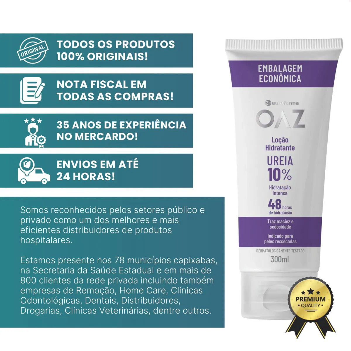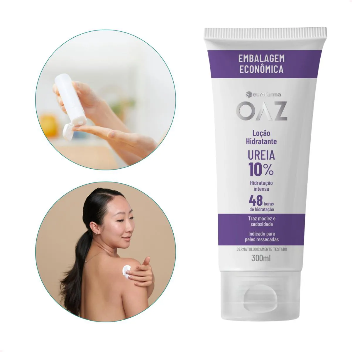A Loção Hidratante OAZ com 10% de ureia foi desenvolvida para combater os sintomas da pele seca e ressecada, promovendo hidratação intensa e prolongada por até 48 horas. Sua fórmula combina ureia com 7 óleos vegetais, potencializando a sensação de suavidade, maciez e conforto na pele.