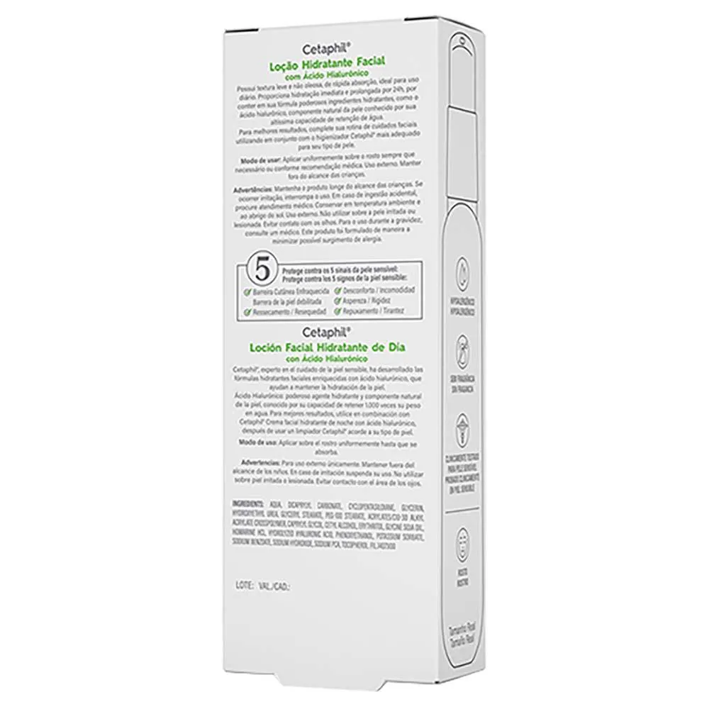 Hidratante facial diário, com o exclusivo ácido hialurônico Hyacare® 50, que penetra nas camadas mais profundas da pele.