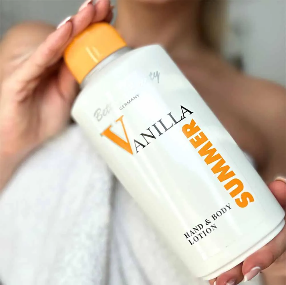 A Loção Hidratante para Mãos e Corpo - Fragrância Summer Baunilha da Bettina Barty é uma loção vegana desenvolvida para oferecer cuidado intensivo à pele, garantindo hidratação profunda e duradoura.
