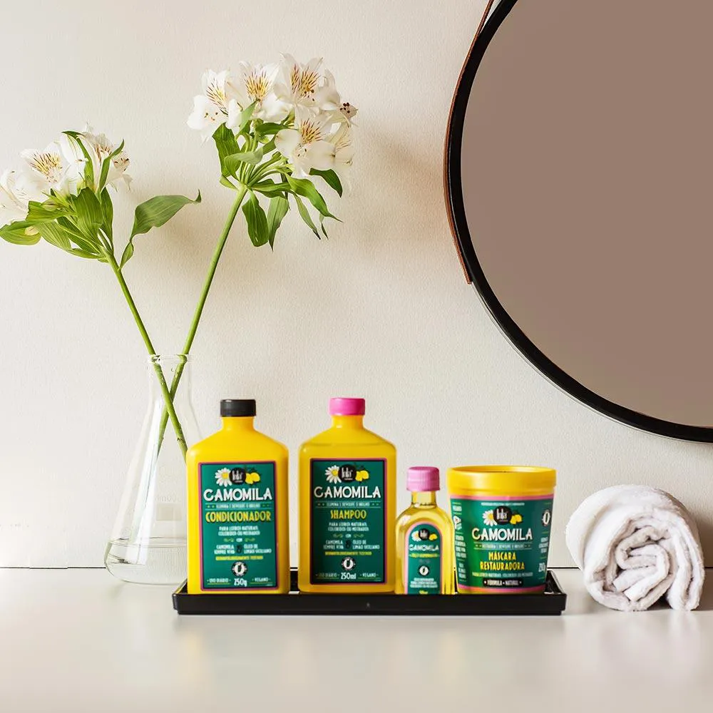 Seu cabelo loiro nunca mais será o mesmo depois de conhecer o Condicionador Camomila de Lola Cosmetics! Com óleo essencial de Limão Siciliano e infusão de Camomila, Sempre Viva e Chá Verde, seus fios vão ficar maravilhosos, super iluminados e com cheirinho de limão.