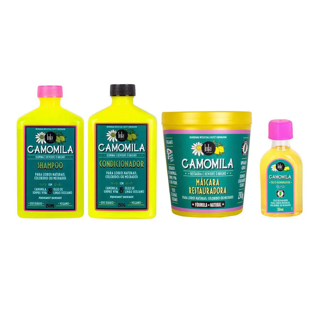 Lola Cosmetics Camomila Kit – Shampoo + Condicionador + Óleo Iluminador + Máscara