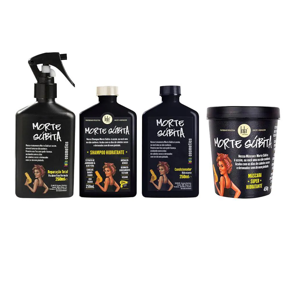 O Kit Morte Súbita da Lola From Rio é um conjunto de produtos capilares composto por shampoo, condicionador, máscara e spray, desenvolvido para realizar cuidados completos e intensivos nos cabelos.