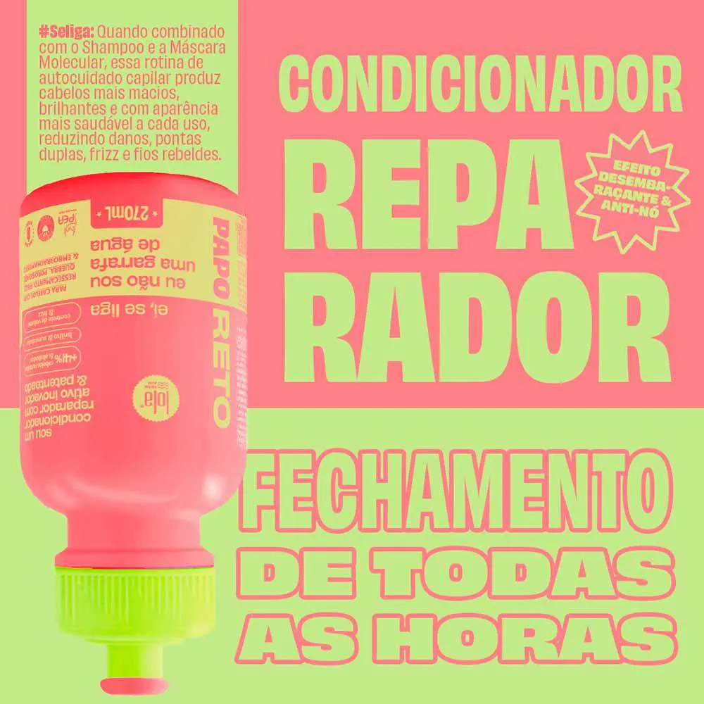 O Condicionador Lola From Rio Papo Reto é um produto de Clean Beauty e Vegan, voltado para a reparação molecular dos cabelos. Ele serve para restaurar profundamente os fios danificados, seja por processos químicos como coloração e descoloração, ou por danos mecânicos e ambientais. Sua ação vai além da superfície, trabalhando no interior dos fios para garantir um cabelo mais saudável e bonito.