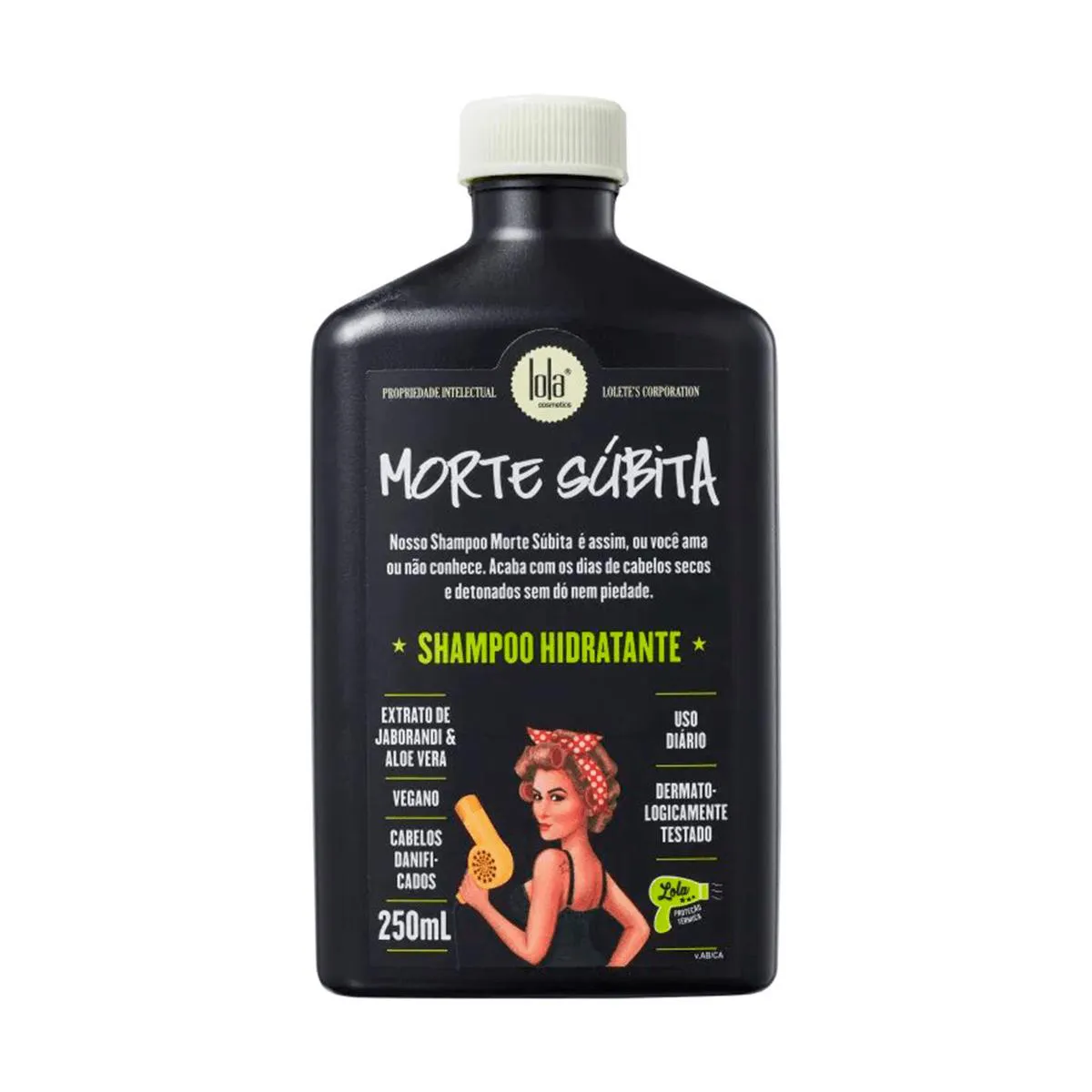 O shampoo Morte Súbita, de Lola Cosmetics, limpa o cabelo de forma suave enquanto repõe a hidratação e a nutrição necessárias para a elasticidade dos fios, alinhamento das cutículas, maciez e o fim do frizz.
