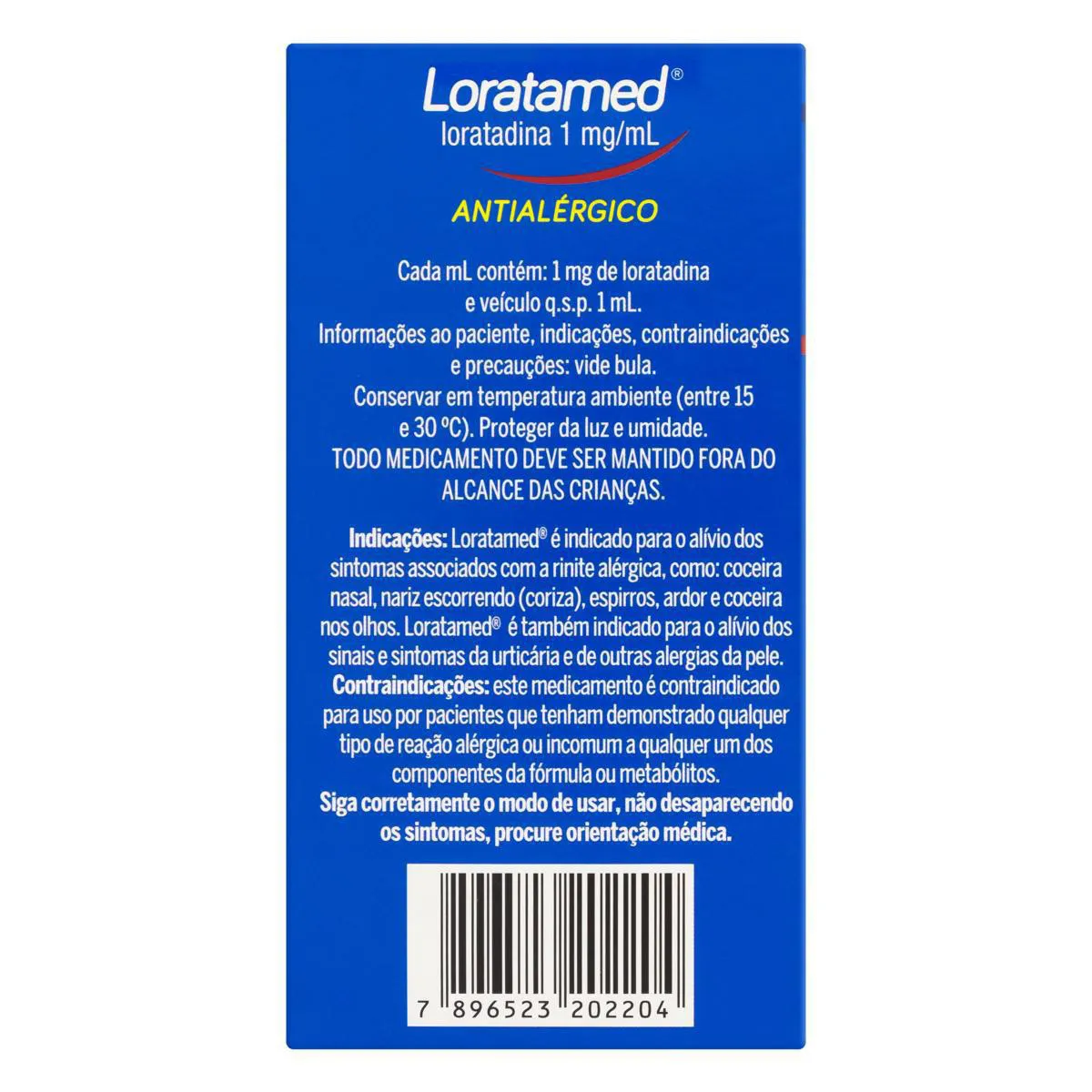 SE PERSISTIREM OS SINTOMAS, O MÉDICO DEVERÁ SER CONSULTADO. LORATAMED É UM MEDICAMENTO. SEU USO PODE TRAZER RISCOS. PROCURE O MÉDICO E O FARMACÊUTICO. LEIA A BULA.