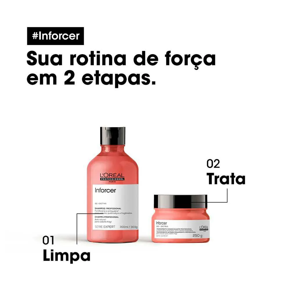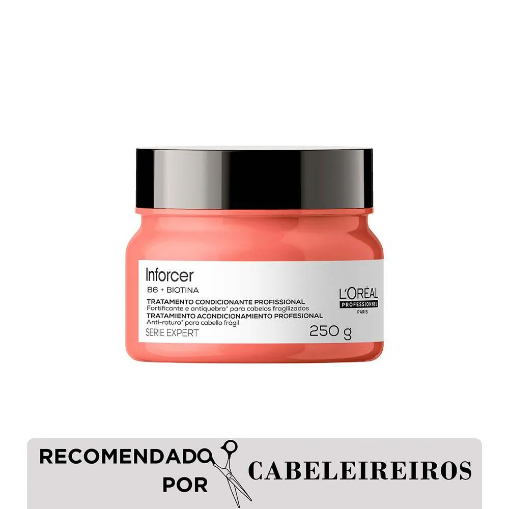 A máscara de Tratamento Inforcer de L’Oréal Professionnel possui ação anti-quebra instantânea nos fios, promovendo aos fios força, um crescimento saudável e a prevenção da queda. Seus ingredientes principais, a Biotina e a vitamina B6, estimulam a circulação sanguínea, levando nutrientes aos fios, promovendo força e prevenindo o ressecamento e a quebra.