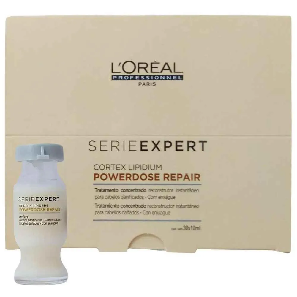 Loréal Profissional Absolut Repair Lipidium Ampola (30 X10ml) - Ampola de tratamento para cabelos extremamente danificados. Repara desde o interior, devolvendo brilho, maciez e proteção. Com alta concentração de nutrientes, L'Oréal Professionnel Absolut Repair Power Repair Cortex Lipidium penetra de imediato na fibra capilar, reconstruindo instantaneamente as zonas sensibilizadas. Também cria uma barreira isolante que retém os nutrientes essenciais, protegendo e mantendo a fibra a salva de novos danos. L'Oréal Professionnel Absolut Repair Power Repair Cortex Lipidium repara e restaura a fibra capilar, proporciona maciez, brilho e toque aveludado para você recuperar a vitalidade e conquistar o cabelo com movimento leve igual o das famosas de Hollywood. Conselho de Aplicação: - Com o cabelo limpo e úmido, distribua todo o produto da ampola sobre o comprimento e pontas. Deixe agir alguns minutos e, então, enxágue. Resultado: - Seu cabelo fica completamente reconstruído, reparado e com muita vitalidade.