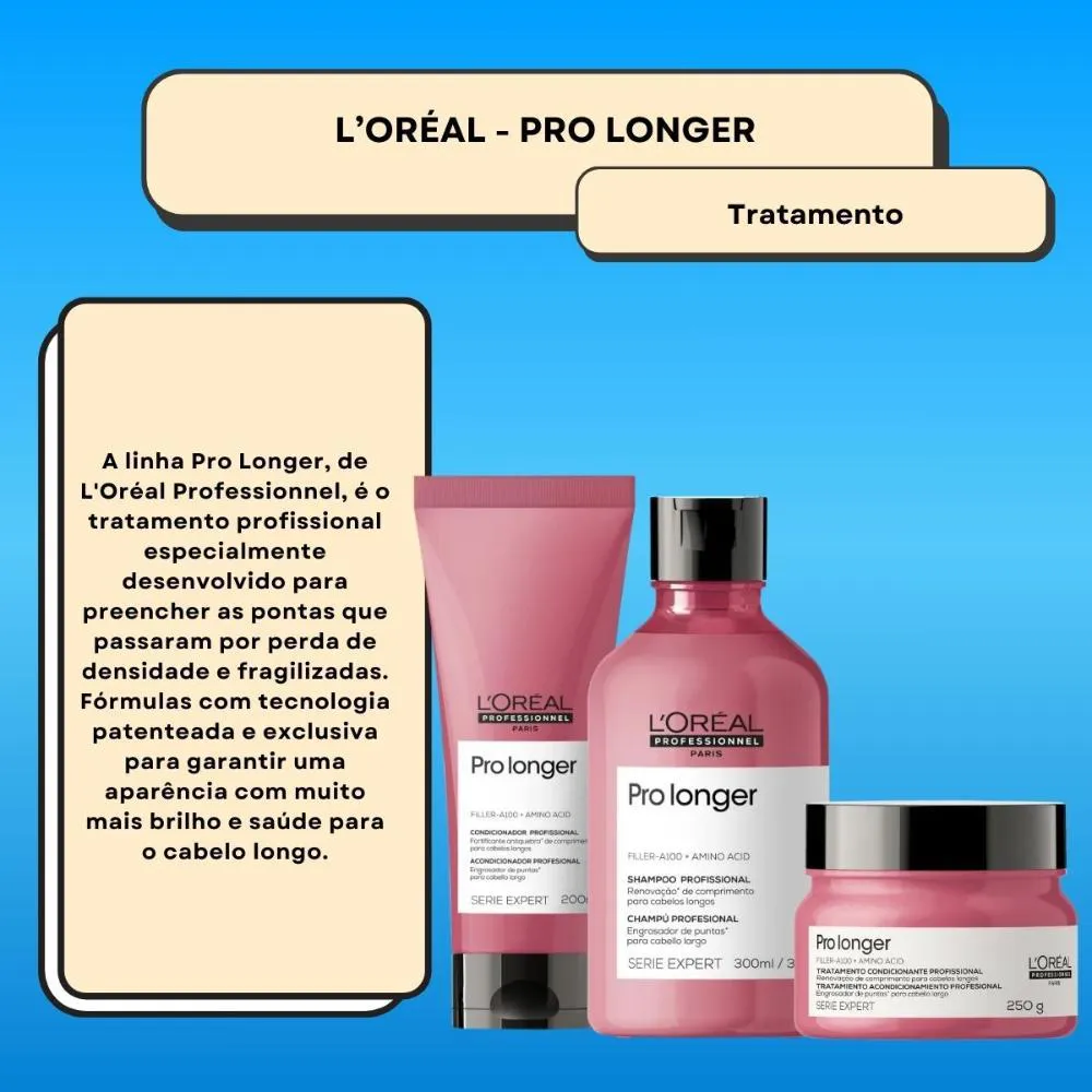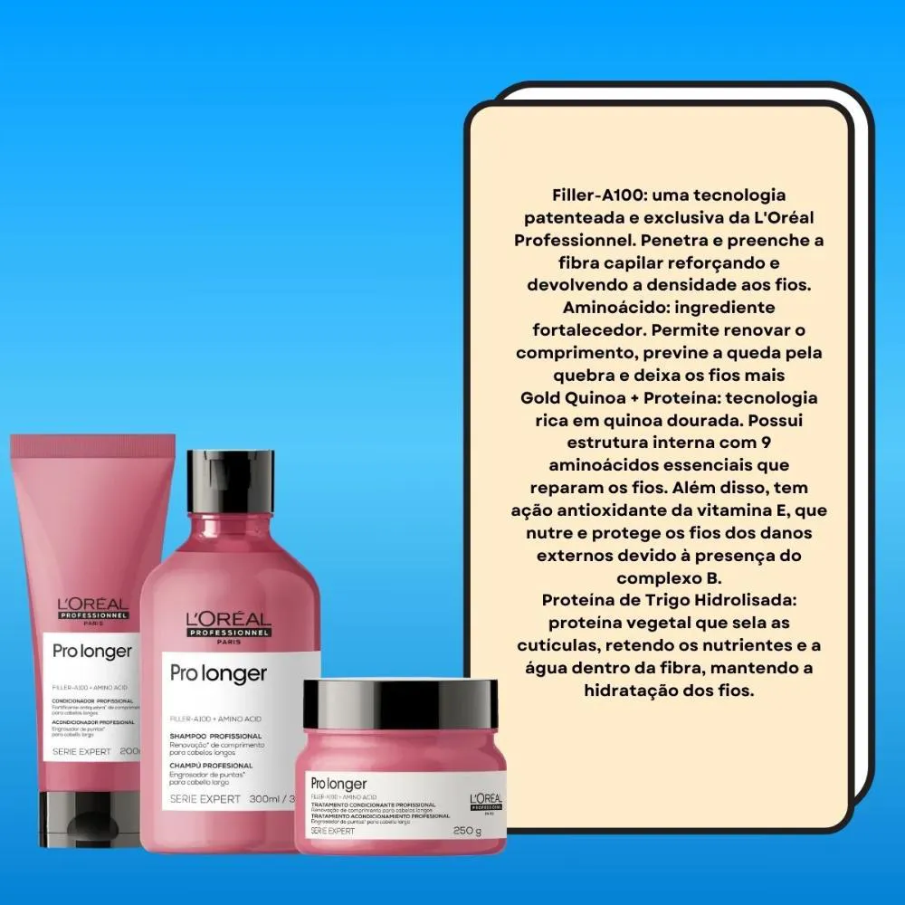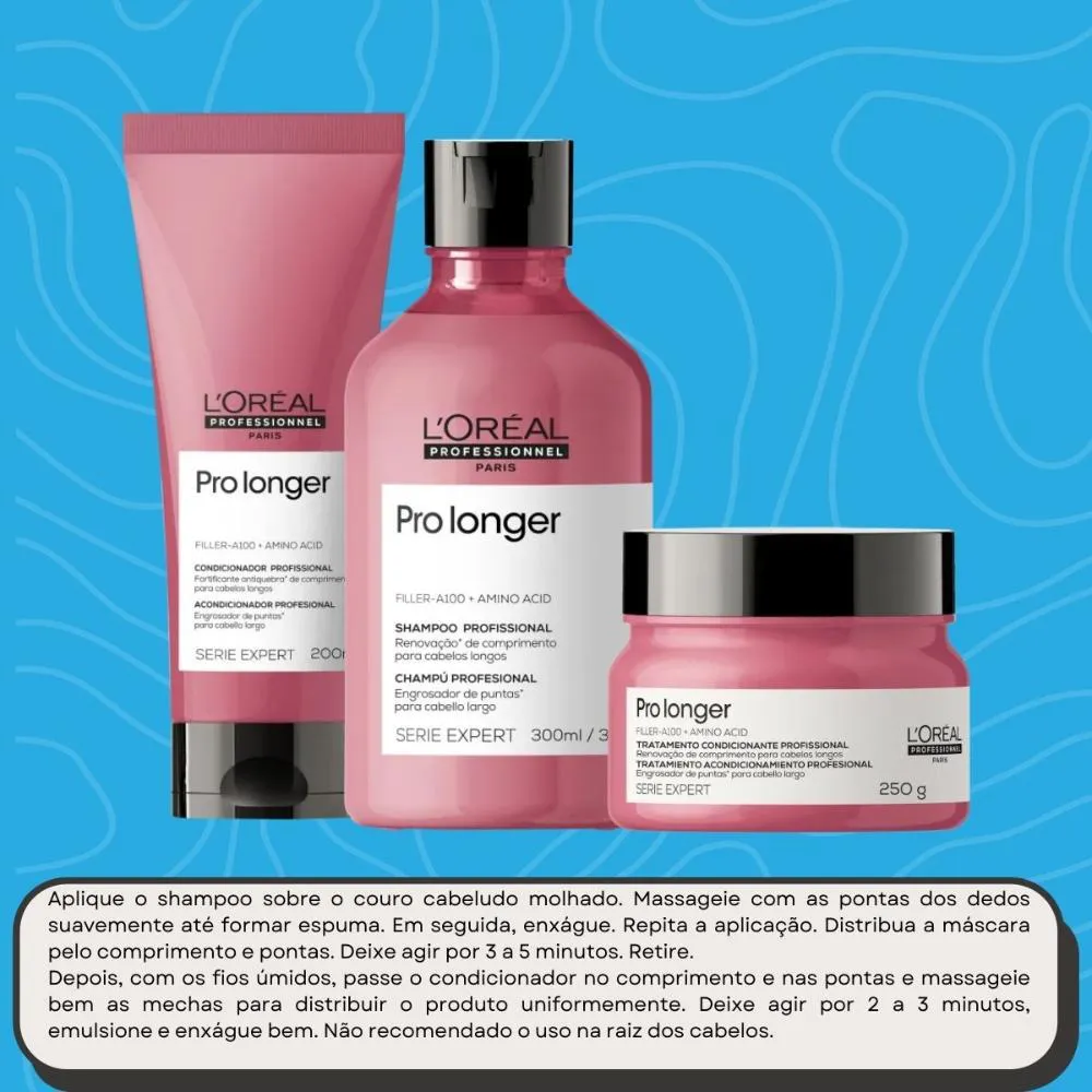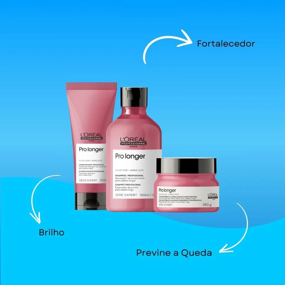 01 Unidade L'Oréal Professionnel Serie Expert Pro Longer Shampoo 300ml 01 Unidade L'Oréal Professionnel Serie Expert Pro Longer Máscara Capilar 250g 01 Unidade L'Oréal Professionnel Serie Expert Pro Longer Condicionador 200ml