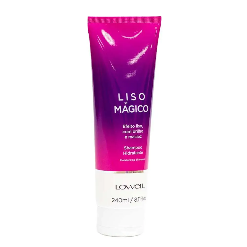 O shampoo Hidratante da Linha Liso Mágico da Lowell possui fórmula suave e hidratante. Sua espuma cremosa limpa e ao mesmo tempo promove textura mais lisa e macia ao cabelo.