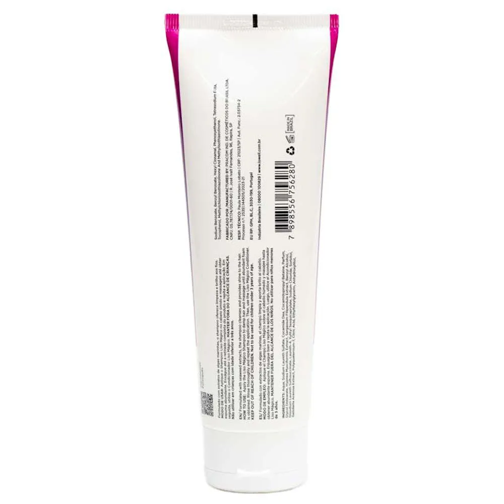 Enriquecido com aminoácidos e polissacarídeos de algas marinhas, o shampoo hidrante Liso Mágico prolonga o alisamento dos fios e forma um filme protetor que sela, remove o frizz, disciplina e ainda oferece brilho diferenciado. Tenha um efeito liso em seus cabelos livre de química!