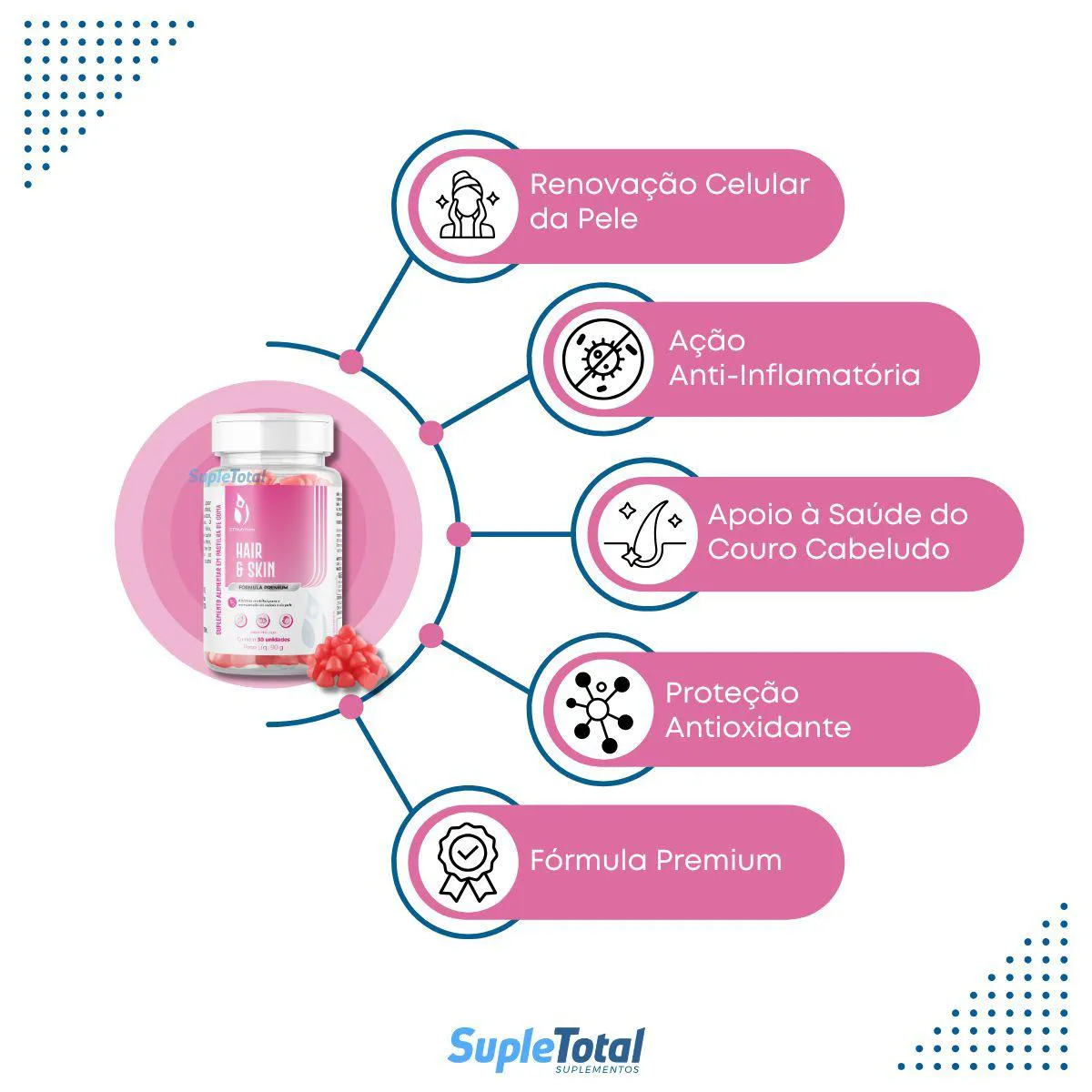 Esqueça cápsulas difíceis de engolir e aquele gosto residual de remédio. Com um delicioso sabor de morango, nossas gomas são práticas e irresistíveis. Mas não é só sabor; é tratamento de dentro para fora:
