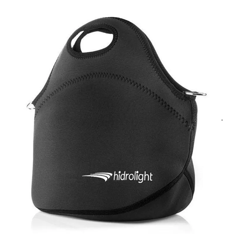 LUNCH BAG - HIDROLIGHT A Lunch Bag da Hidrolight conserva a temperatura dos alimentos por até 4 horas. Confeccionada em neoprene, material leve, térmico, resistente à água, possui fechamento em zíper e acompanha alça para carregá-la.Composição: Borracha de cloropreno revestida com tecido 100% poliamida. Tamanho: Único. Cores disponíveis: Preto e Oncinha.Dimensões aproximadas: 29 x 30 x 16 cm (A x L x P). Benefícios: - Design moderno e prático;- Com zíper interno;- Mantém a temperatura e frescor dos alimento.