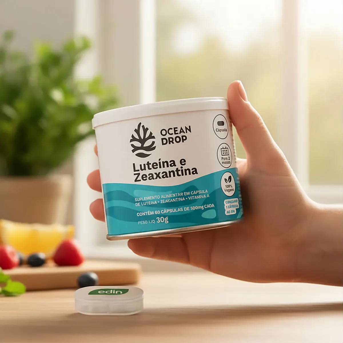 - Suplemento com luteína, zeaxantina e vitamina A.