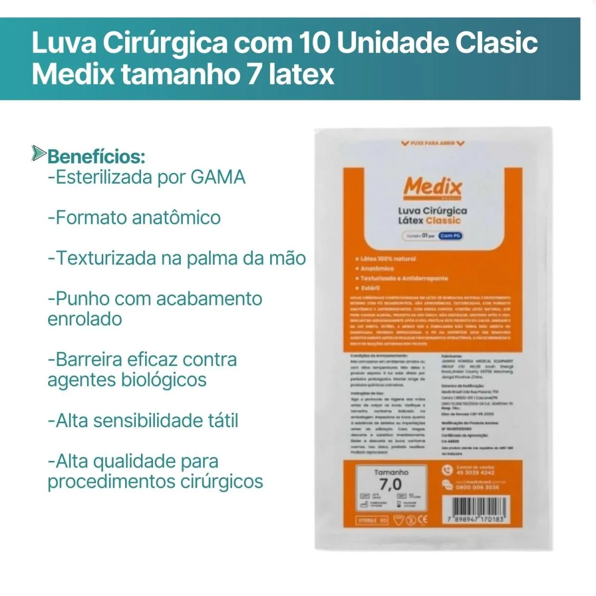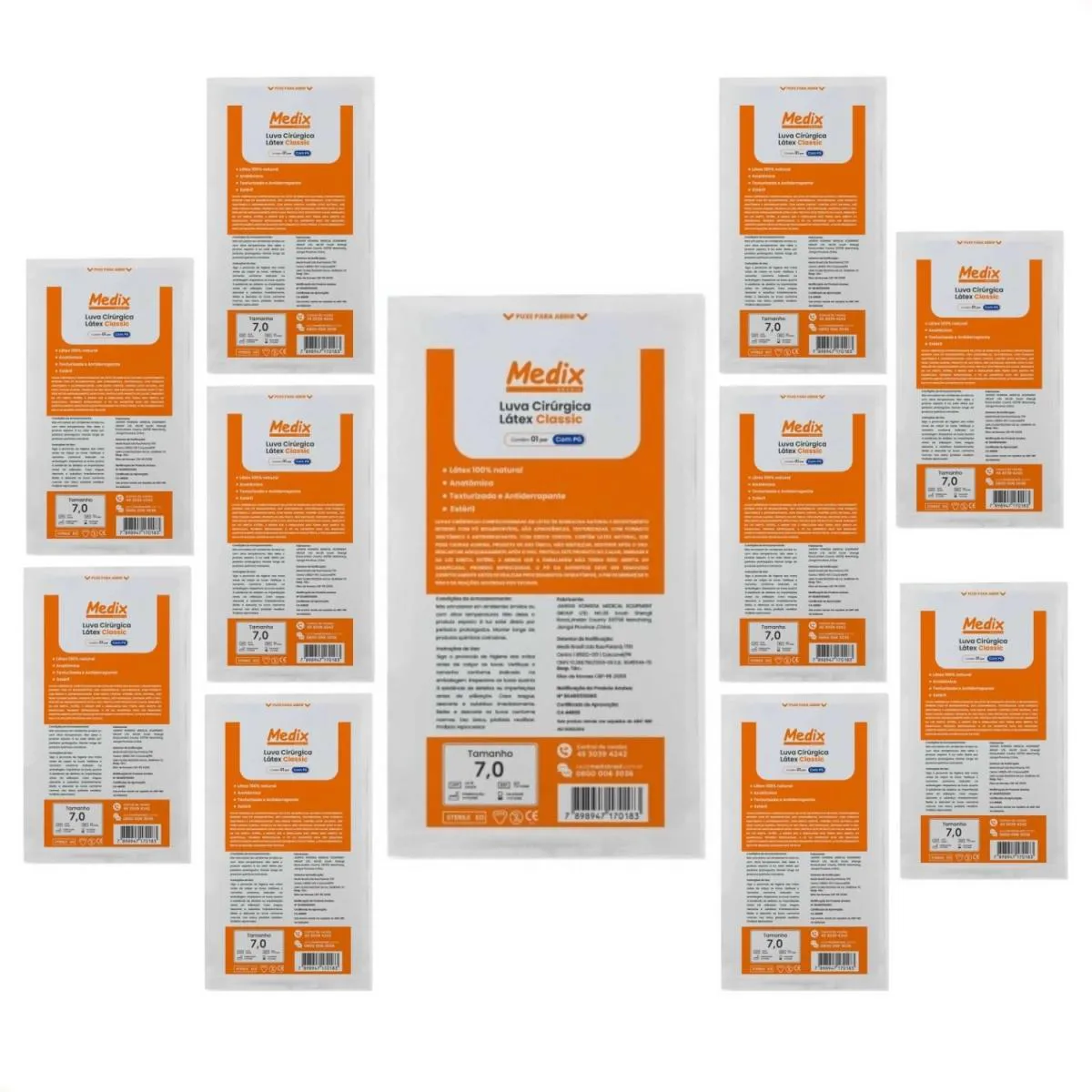 Luva Cirúrgica Estéril Latex Classic Medix Tamanho 7 (10 Unidades)