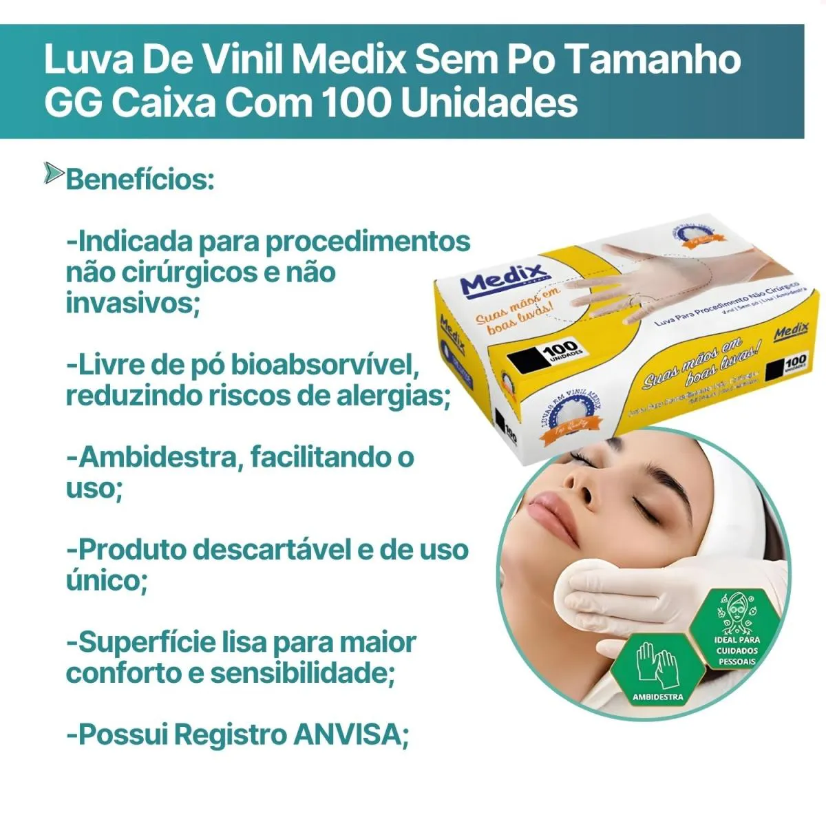 Luva de Vinil Medix sem Po Tamanho Gg Caixa com 100 Unidades -