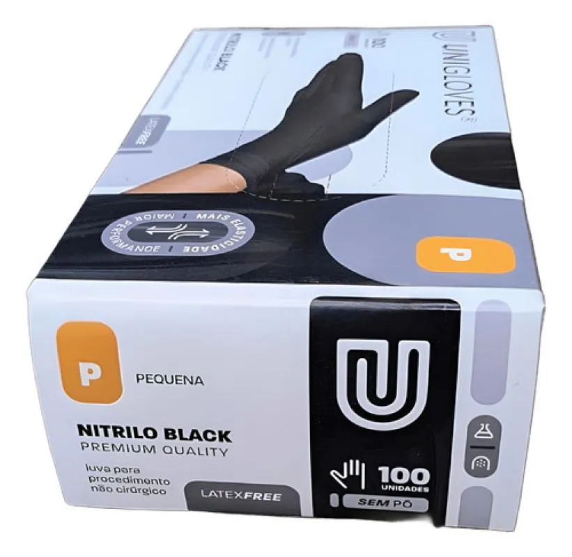 Luva Descartável Nitrílica Unigloves sem Pó Preta Black 100U P Preto