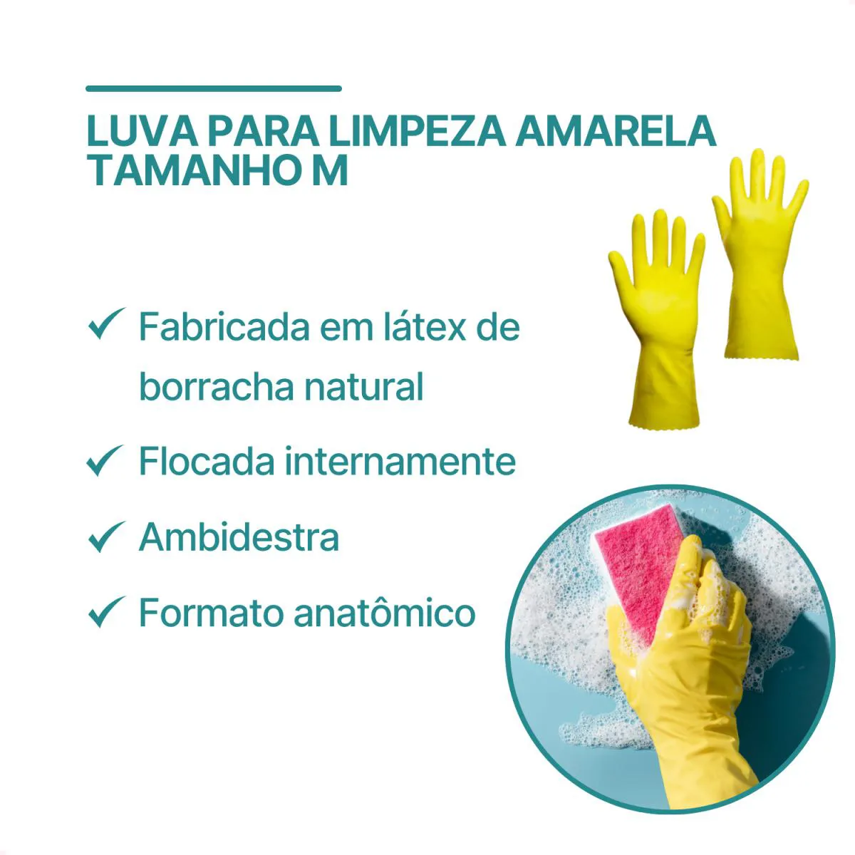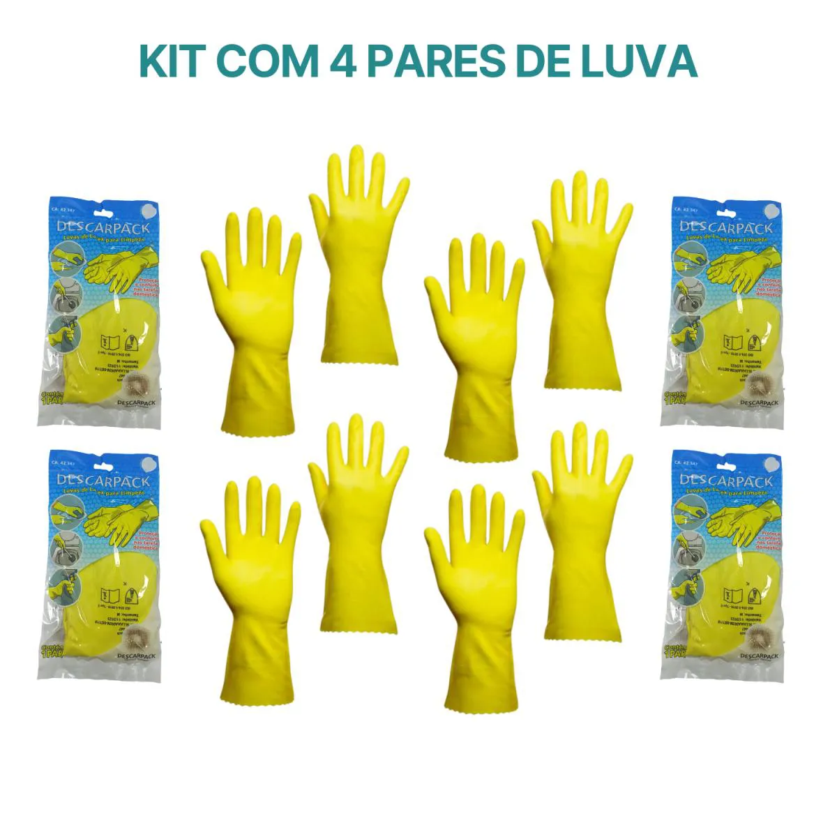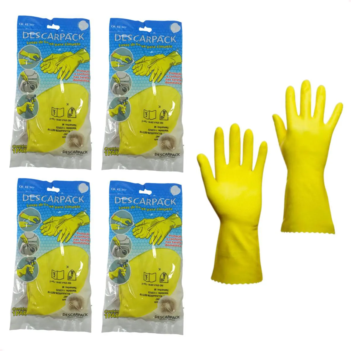 Luva Látex Amarela Multiuso Descarpack - Tamanho M - 4 Pares