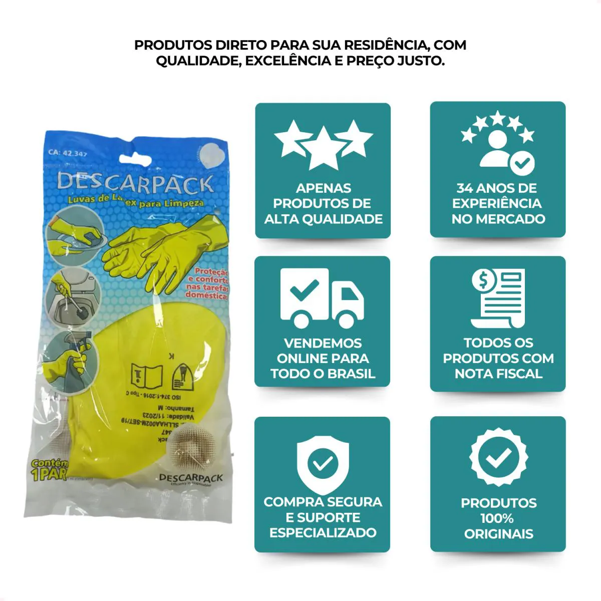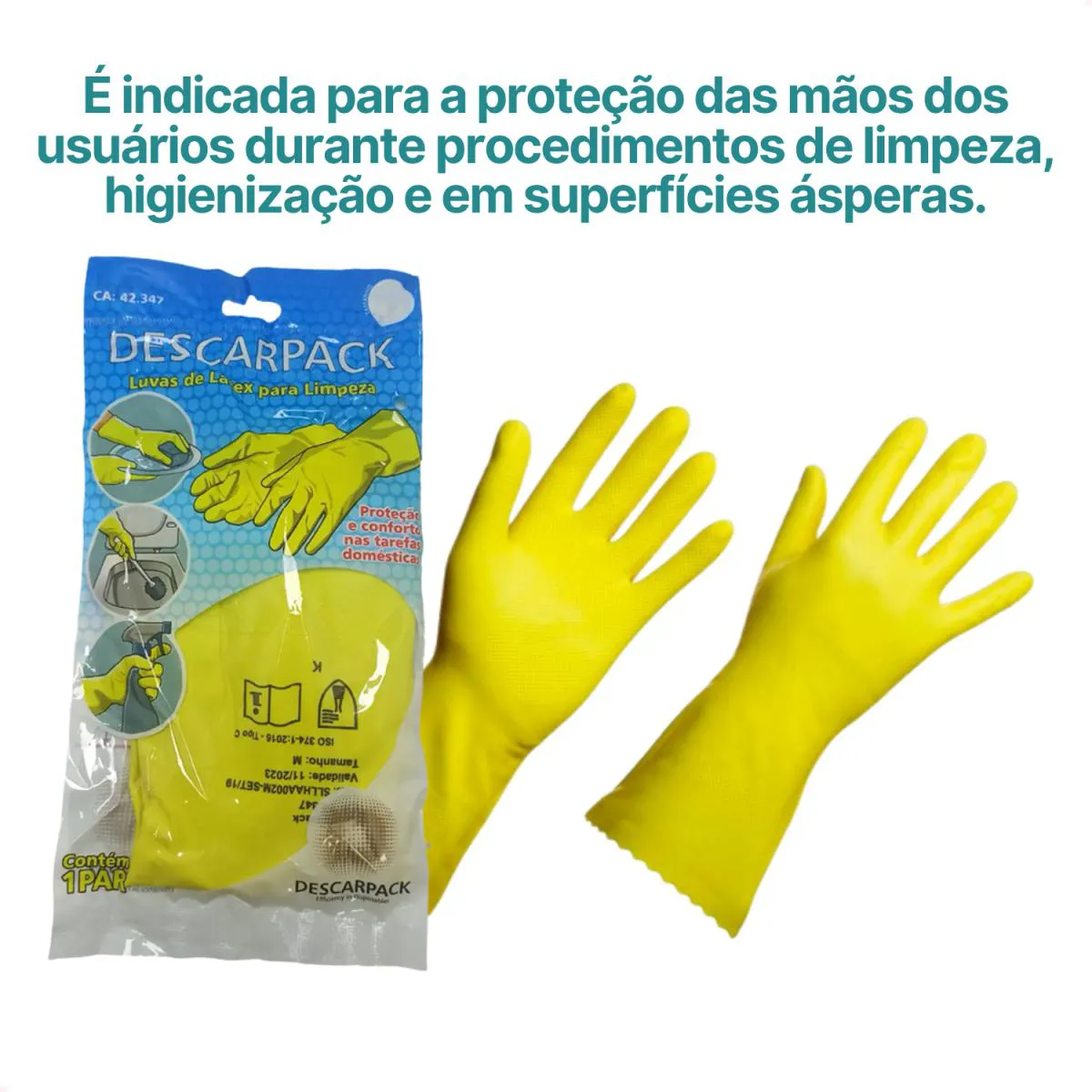 A Luva de Látex para Limpeza da Descarpack é indicada para a proteção das mãos dos usuários durante procedimentos de limpeza, higienização e em superfícies ásperas.