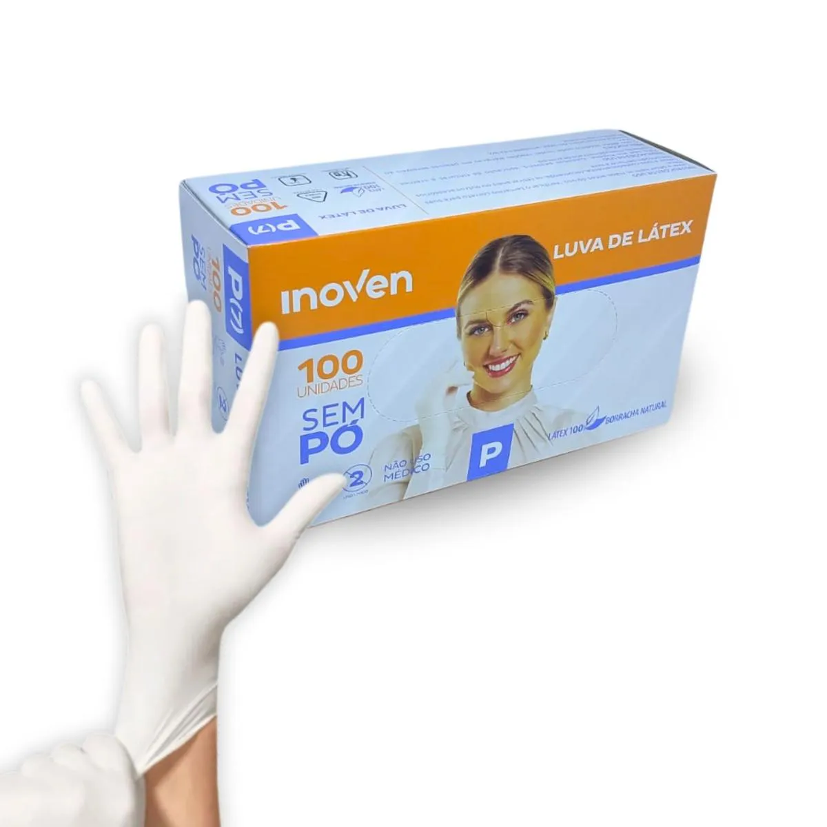 Luva Latex Descartavel Sem Pó - INOVEN - PP, P, M e G - 100 unidades