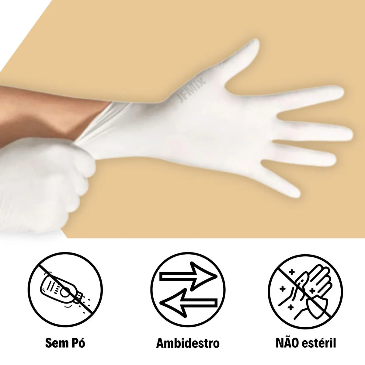 Lavar e secar bem as mãos antes do uso. Calçar as luvas cuidadosamente. Recomenda-se retirar anéis ou outros acessórios que possam perfurar a luva.
