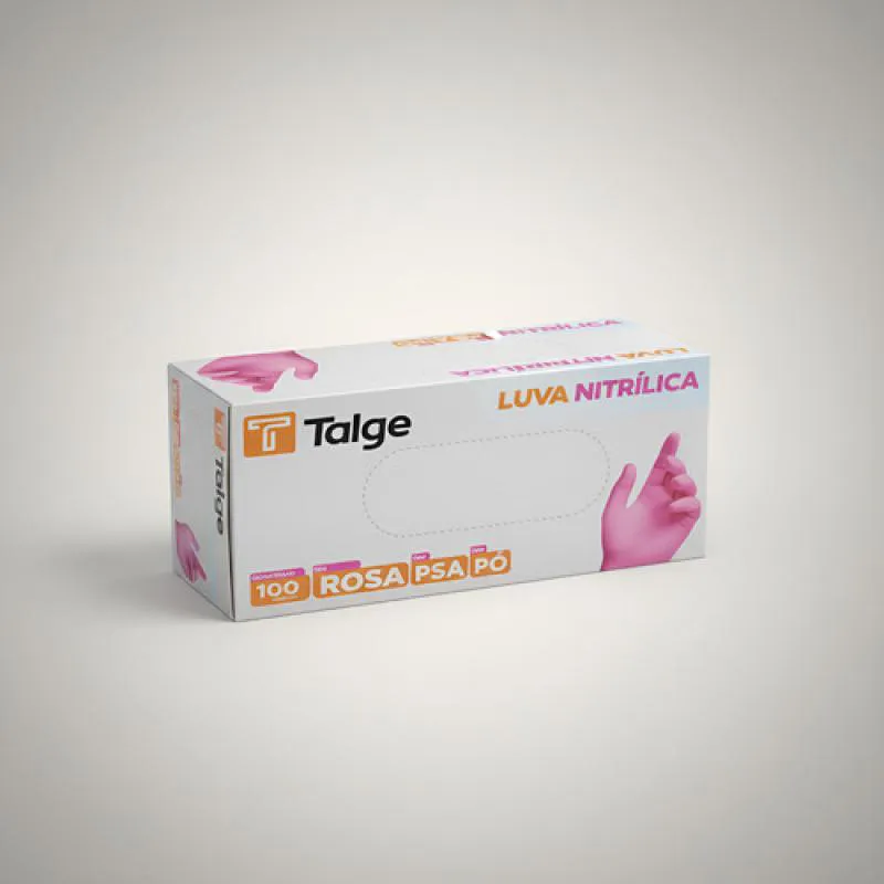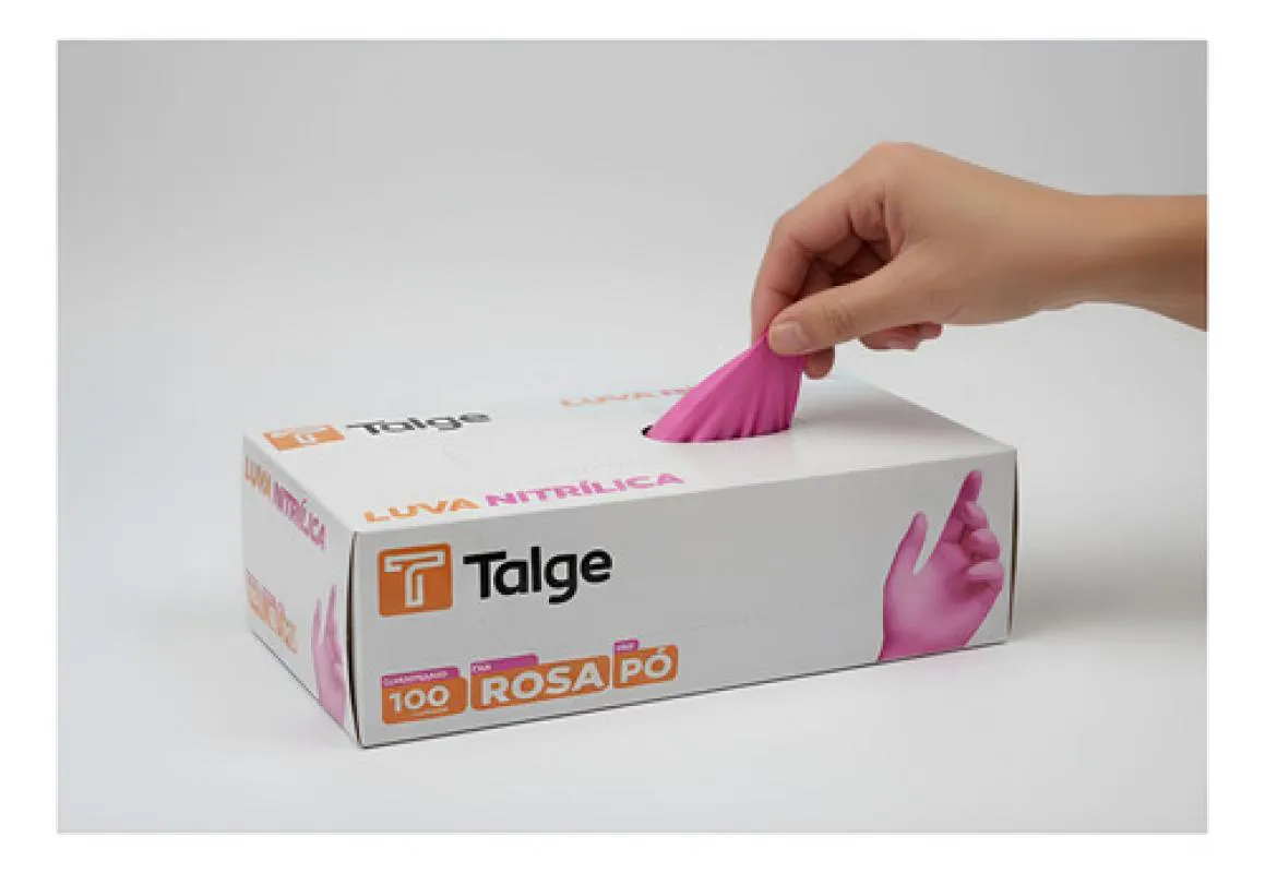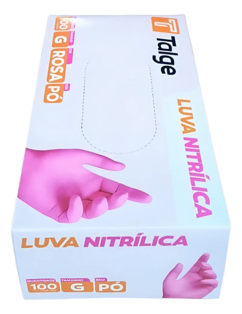 Luva Nitrílica Rosa Descartável sem Pó C/ 100 Talge G