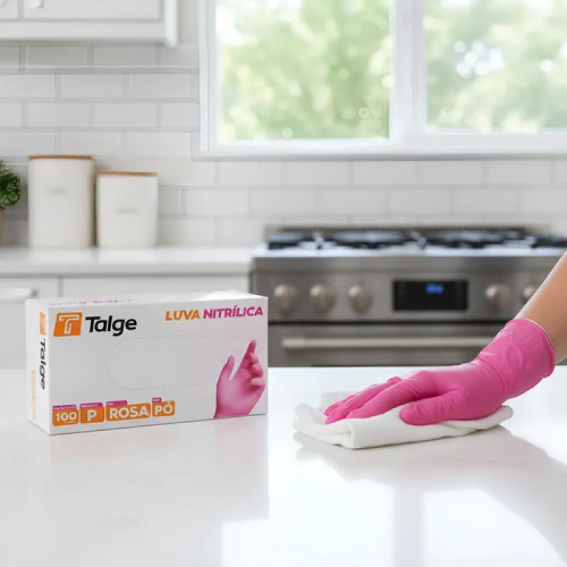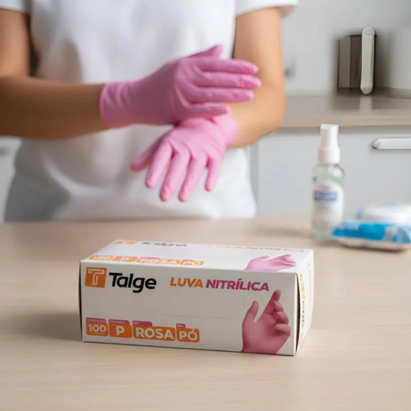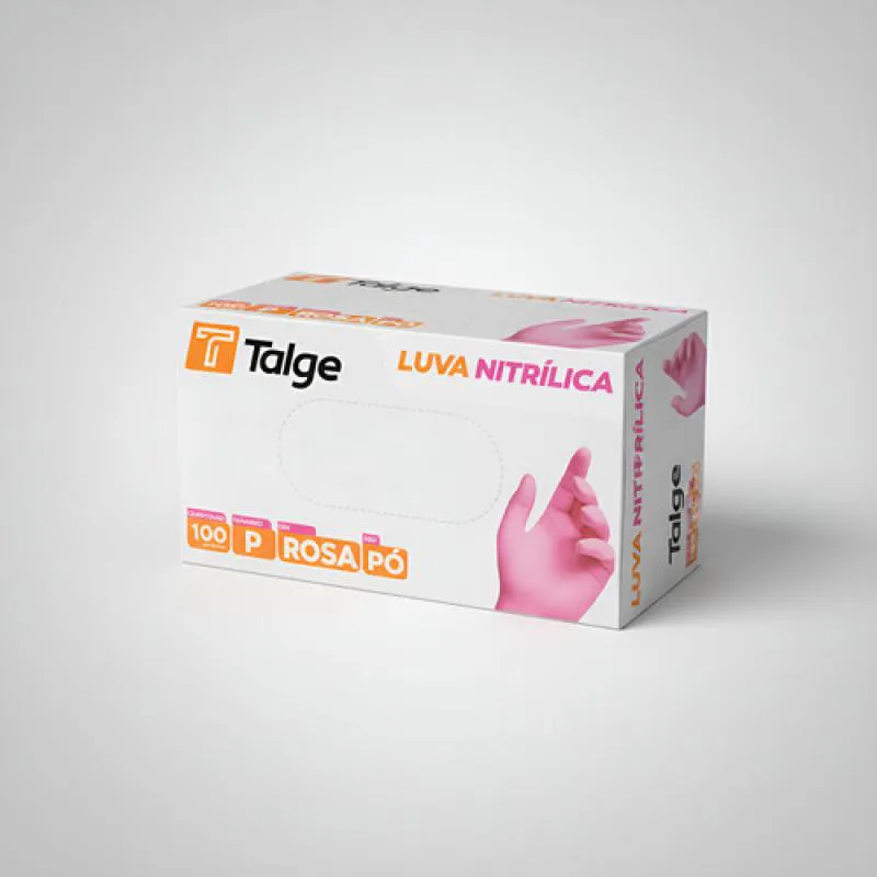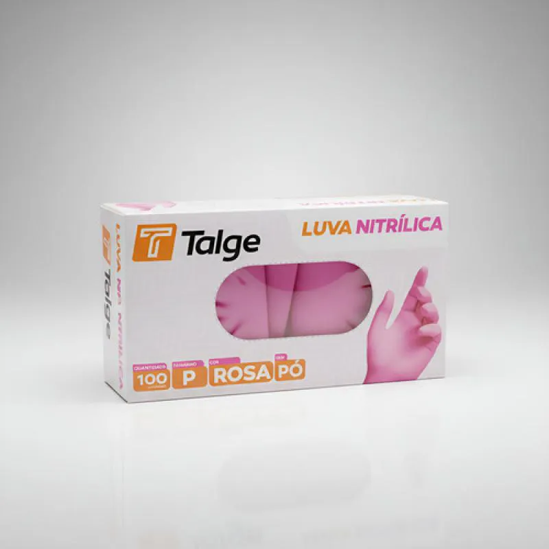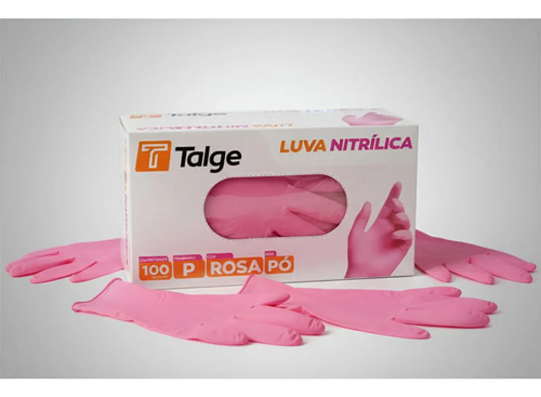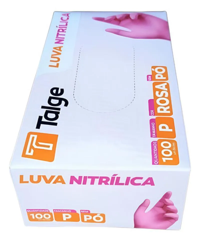Luva Nitrílica Rosa Descartável sem Pó C/ 100 Talge P