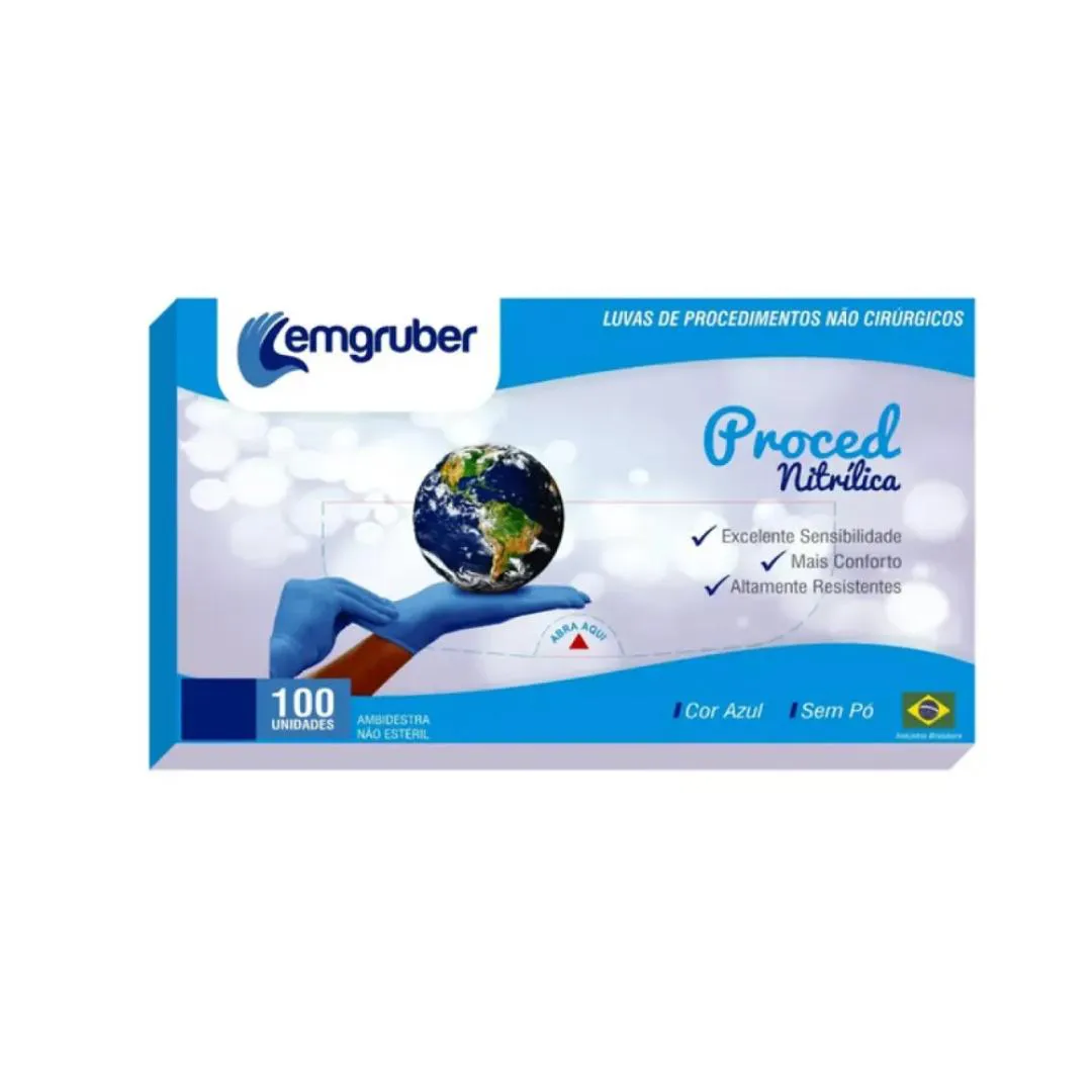 Luva Proced Nitrílica Azul sem Pó Tam. G C/ 100Un. Lemgruber