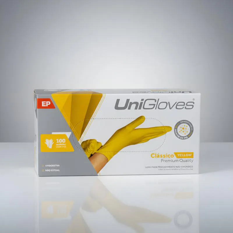 Luva Procedimento Latex Amarelo Yellow com Pó Unigloves 100U EP