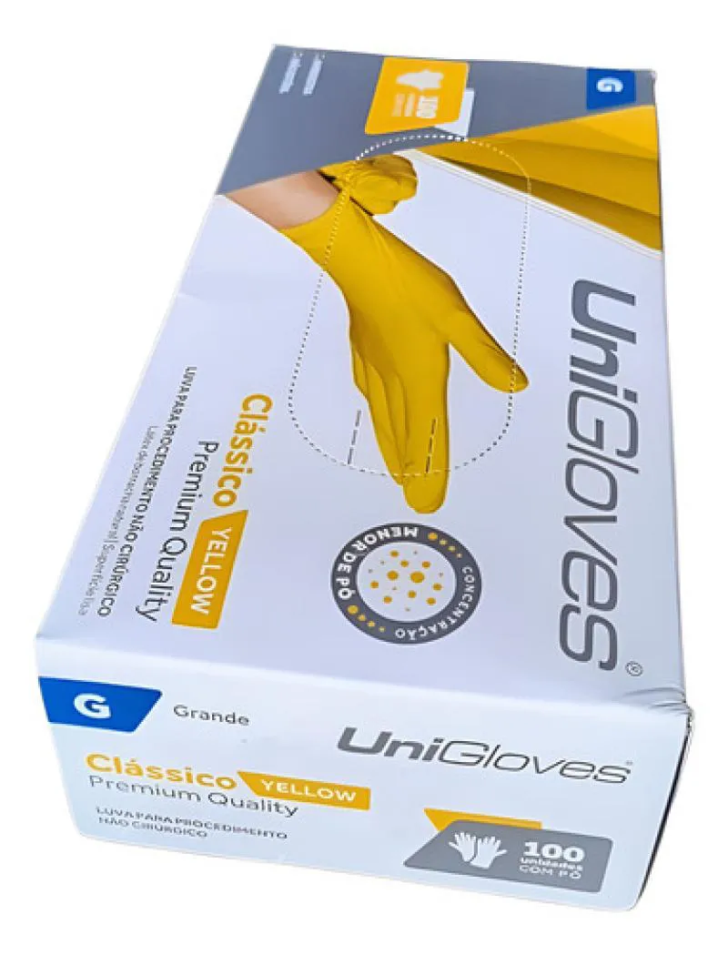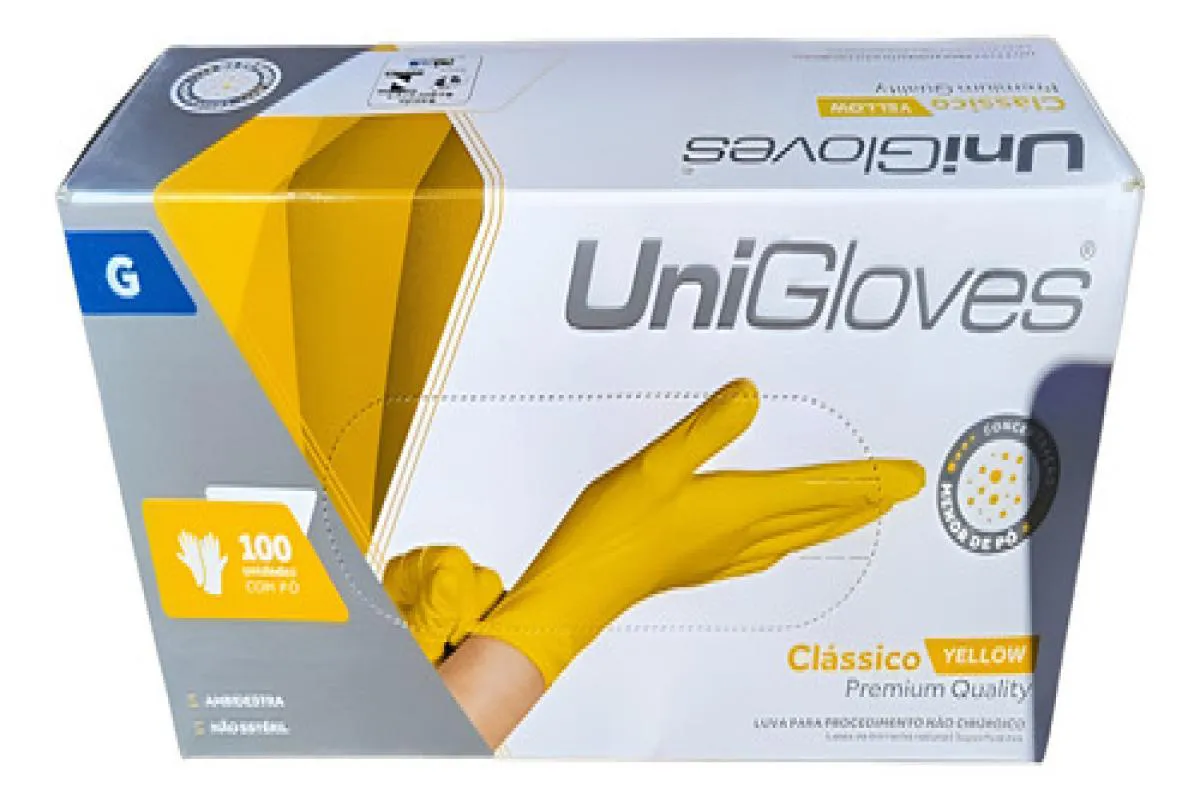Luva Procedimento Latex Amarelo Yellow com Pó Unigloves 100U G