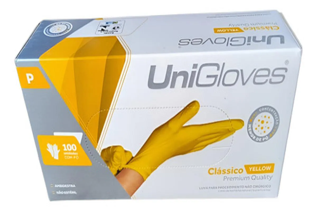 Luva Procedimento Latex Amarelo Yellow com Pó Unigloves 100U P
