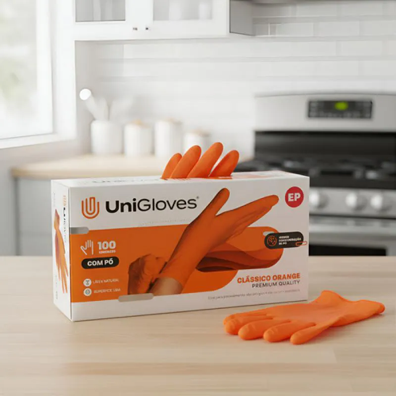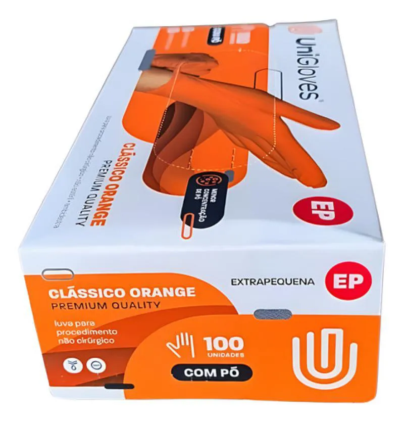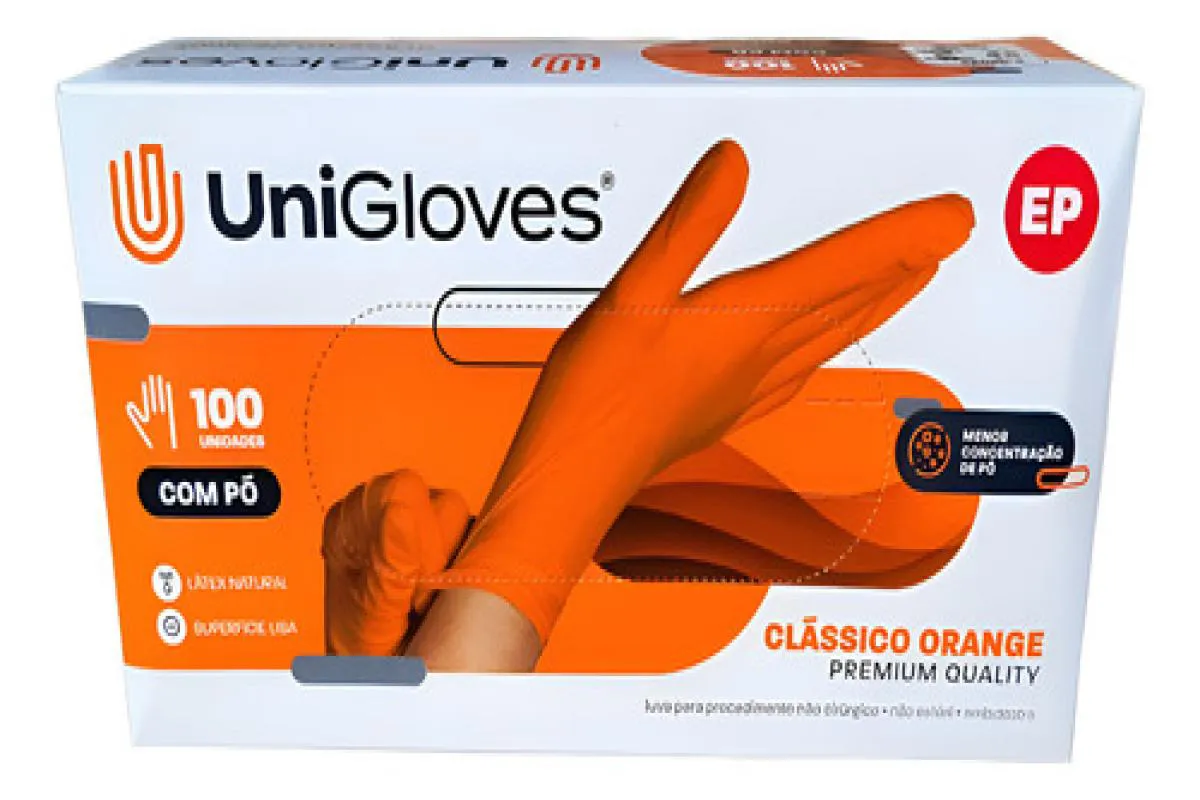 Luva Procedimento Latex Orange Laranja com Pó Unigloves 100U EP