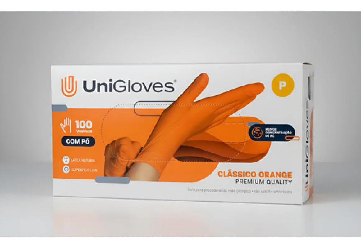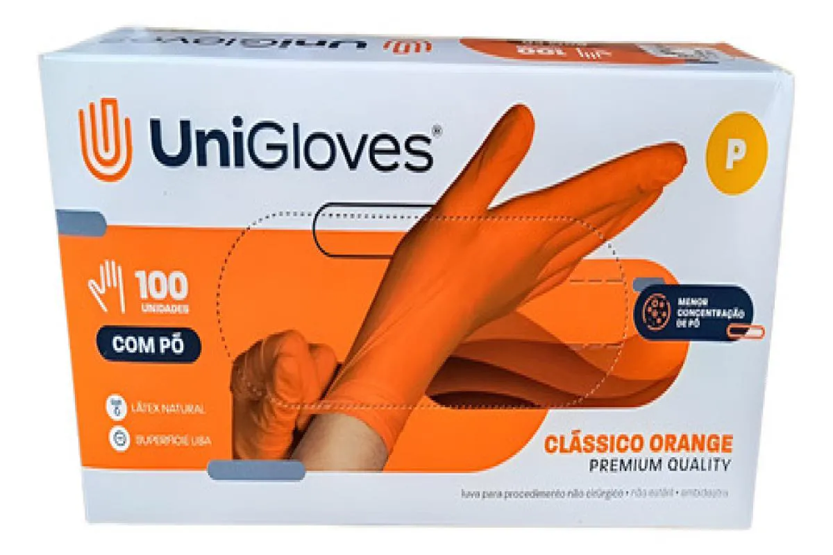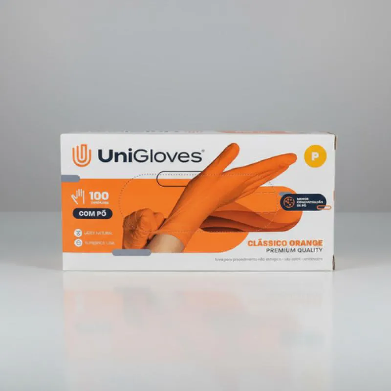 Luva Procedimento Latex Orange Laranja com Pó Unigloves 100U P