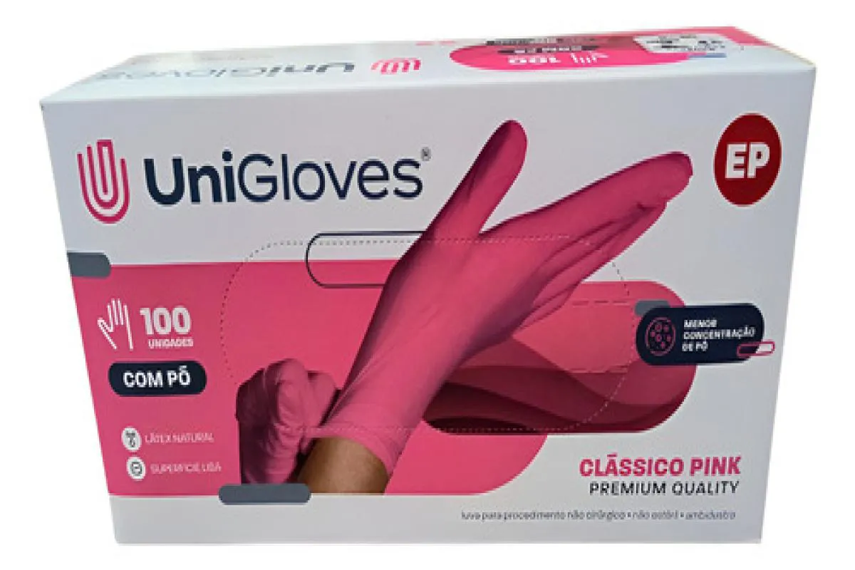 Luva Procedimento Latex Pink com Pó Unigloves 100Un EP