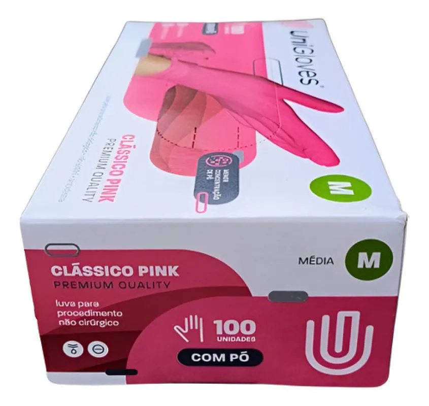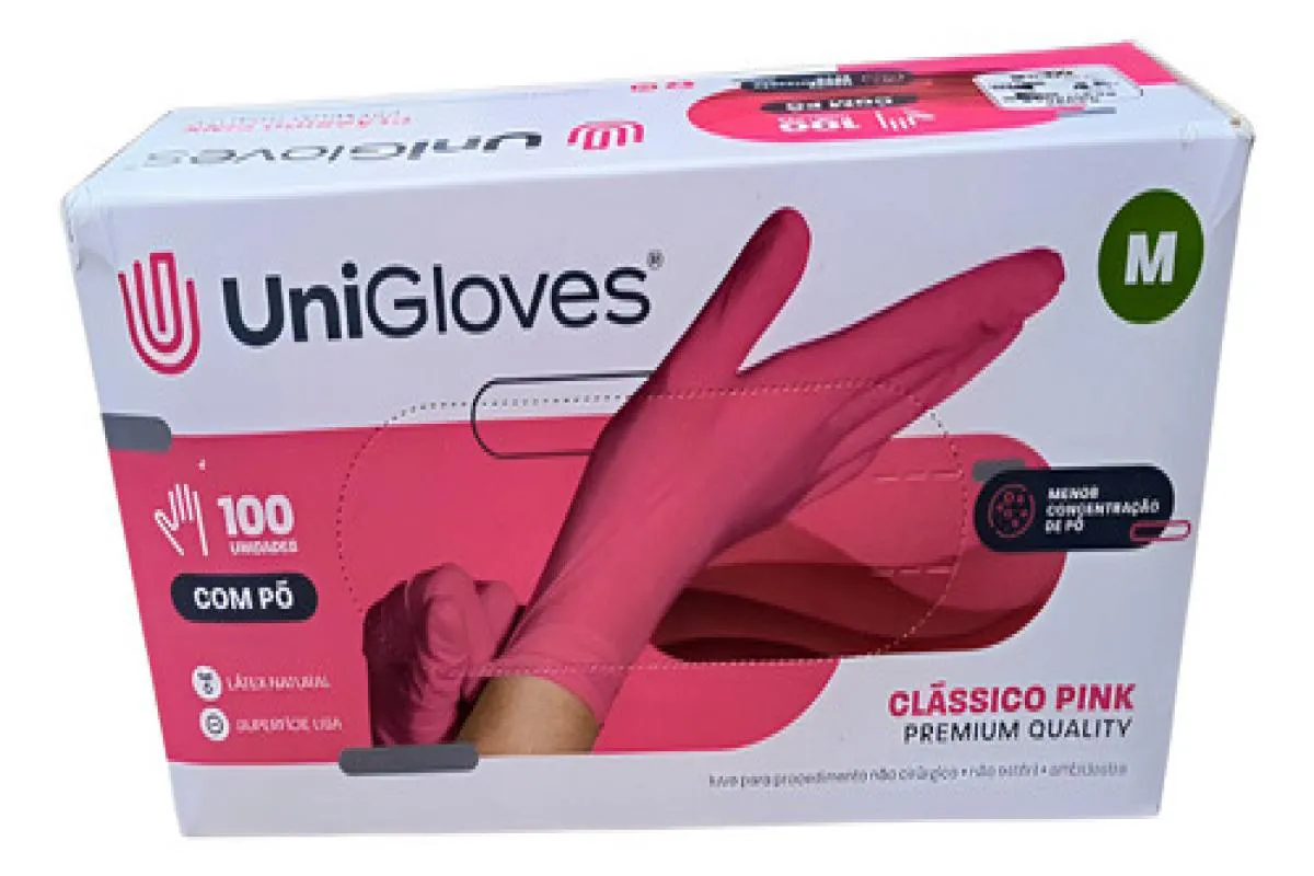 Luva Procedimento Latex Pink com Pó Unigloves 100Un M