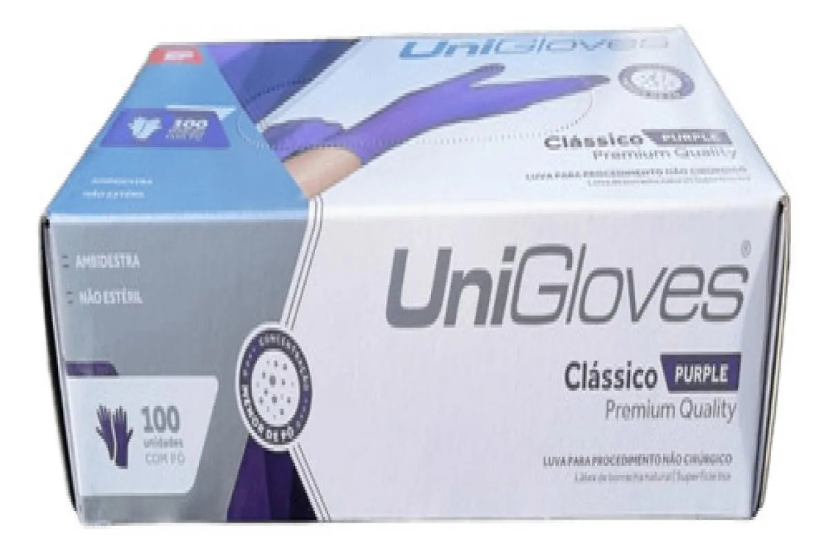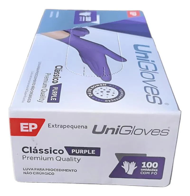Luva Procedimento Látex Roxa Purple com Pó Unigloves 100Un EP