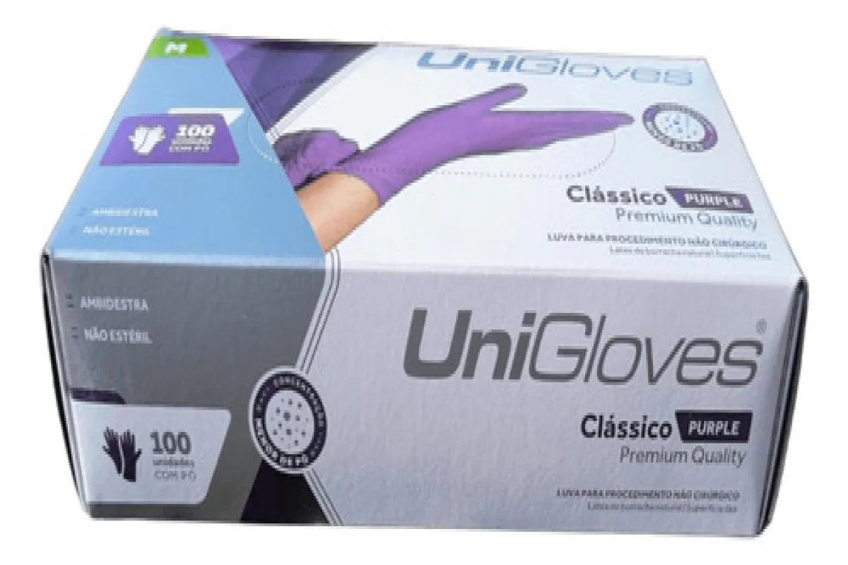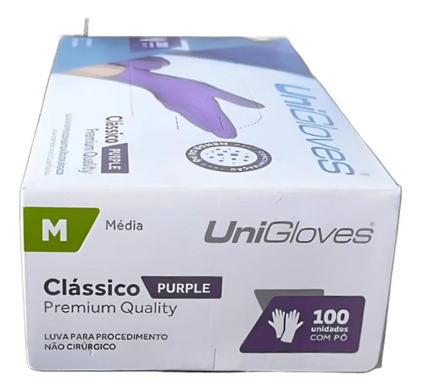 Luva Procedimento Látex Roxa Purple com Pó Unigloves 100Un M