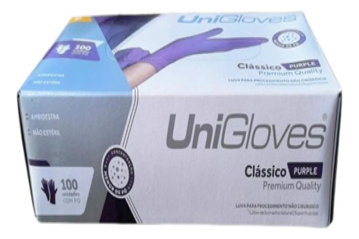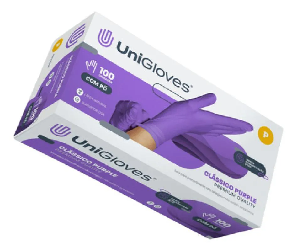 Luva Procedimento Látex Roxa Purple com Pó Unigloves 100Un P