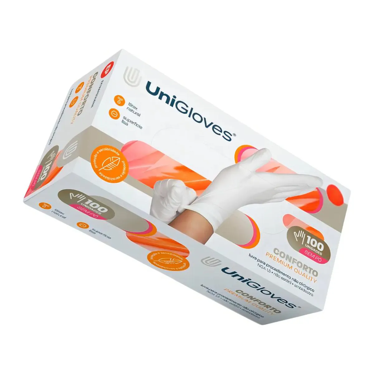 Luva Procedimento Látex sem Pó White Premium Quality 100Un - Unigloves EP