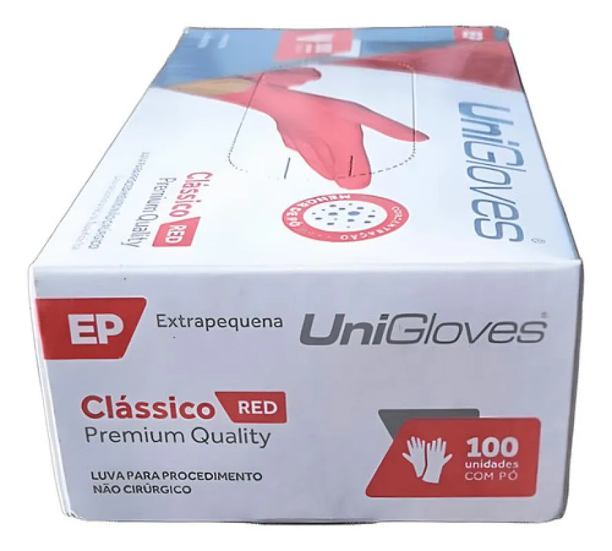 Luva Procedimento Latex Vermelha Red com Pó Unigloves 100Un EP