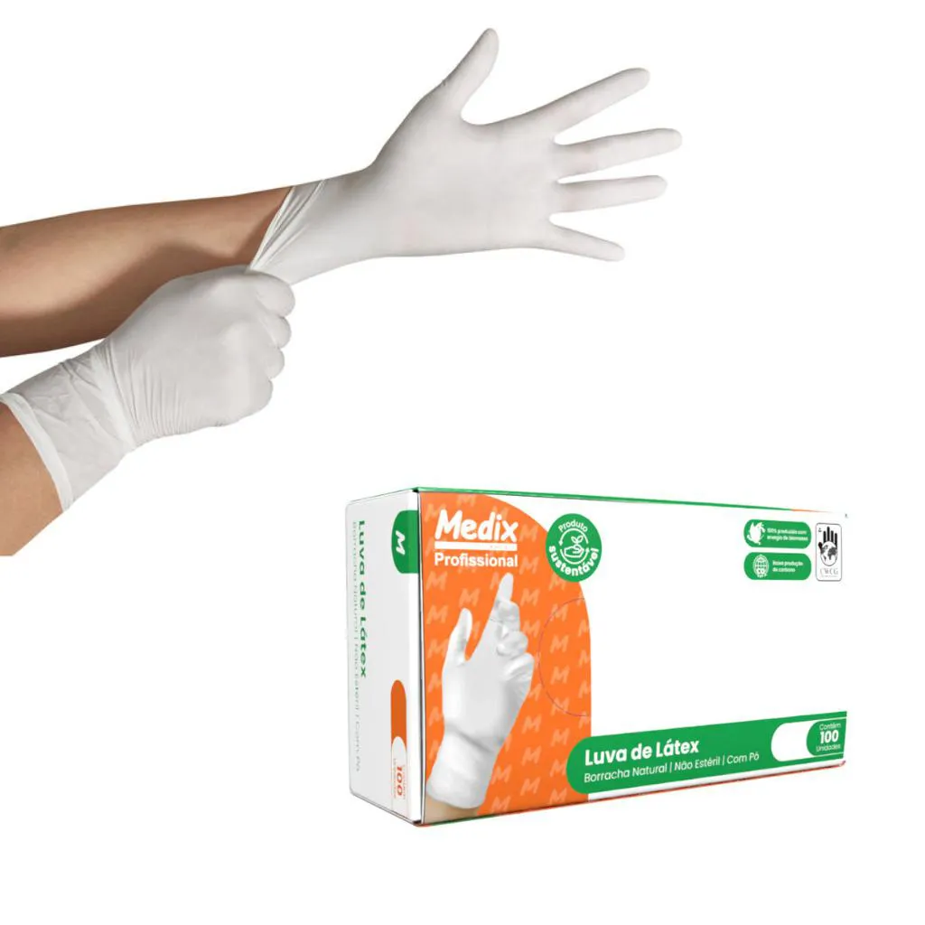 Luva Profissional de Latex G Caixa com 100 Unidades Mblife Medix