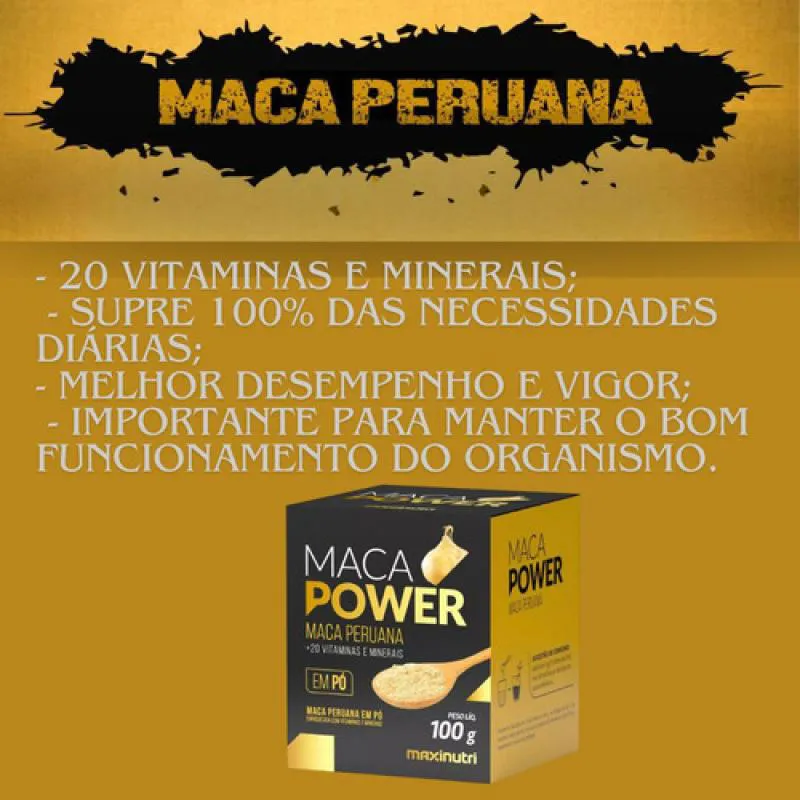 Lepidium meyenii Walp.), ácido L-ascórbico (Vit. C), nicotinamida (Vit. B3), fumarato ferroso (Ferro), óxido de zinco (Zinco), D-pantotenato de cálcio (Ácido pantotênico), sulfato de manganês (Manganês), cloridrato de piridoxina (Vit. B6), tiamina mononitrato (Vit. B1), riboflavina (Vit. B2), acetato de retinila (Vit. A), ácido N-pteroil-L-glutâmico (Ácido fólico), fitomenadiona (Vit. K), sulfato cúprico (Cobre), selenito de sódio (Selênio), cloreto crômico hexahidratado (Cromo), molibdato de sódio diidratado (Molibdênio), D-biotina (Biotina), colecalciferol (Vit. D3), acetato de DL-alfatocoferila (Vit. E) e cianocobalamina (Vit. B12).