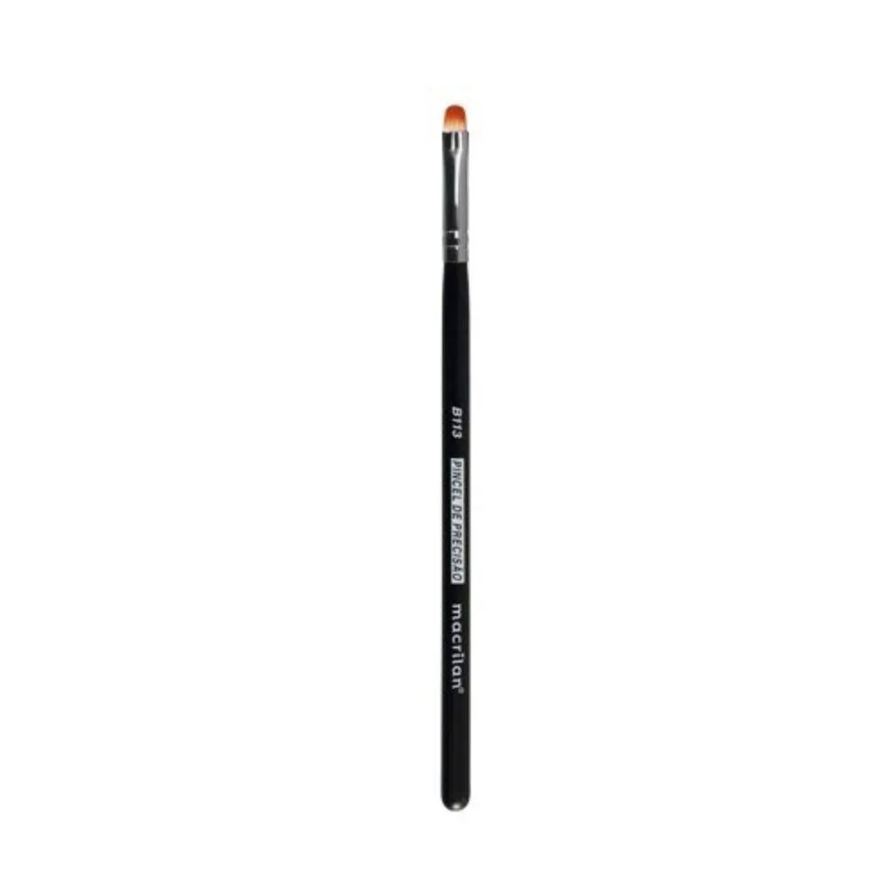 Pincel Macrilan B113, especialmente desenvolvido para aplicar sombra com precisão, no canto interno e externo dos olhos. Pode ser utilizado na aplicação de delineador. Feito com cerdas especiais para um acabamento suave e uma maquiagem impecável.