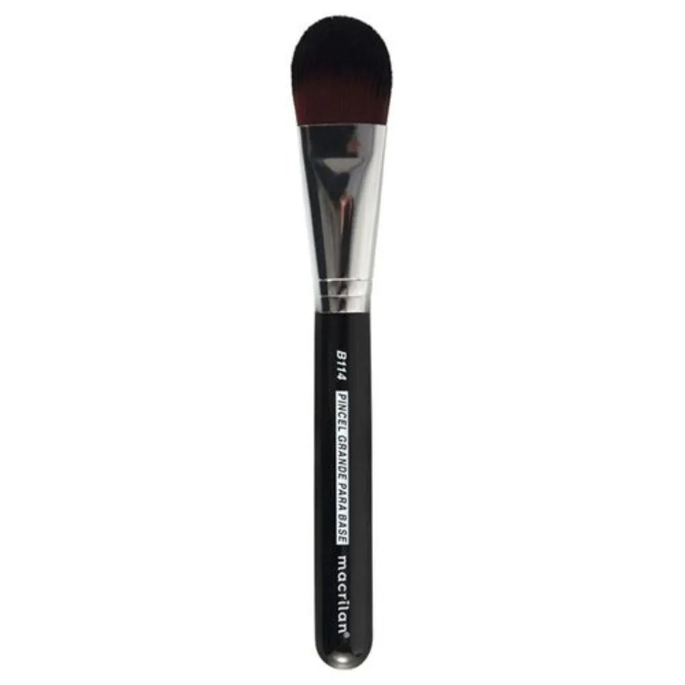 Pincel Macrilan B114, especialmente desenvolvido para aplicar e distribuir base em creme ou líquida em todas as áreas da face. Feito com cerdas especiais que permitem uma aplicação suave e uma maquiagem uniforme.
