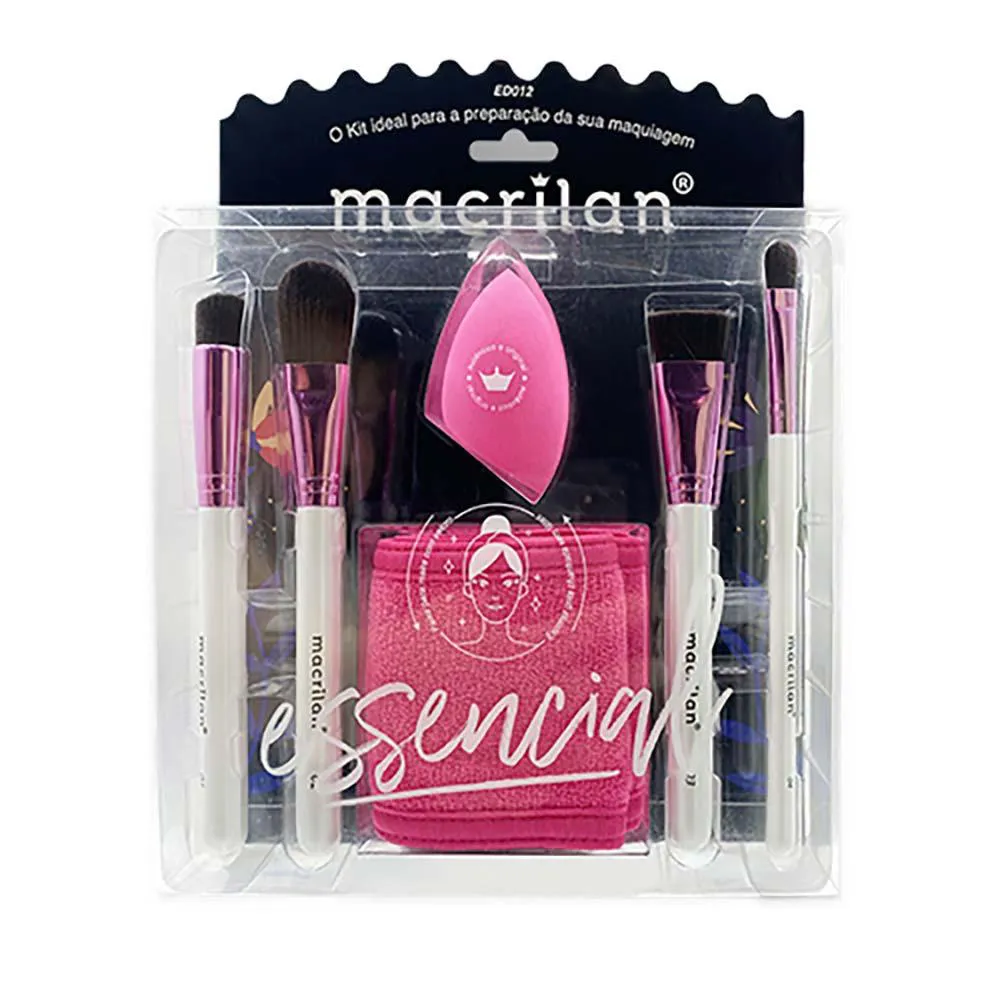 1 Faixa para maquiagemO que é e para que serve?Kit ED012 Essencial da Macrilan , foi especialmente desenvolvido com 04 pincéis de cerdas sintéticas, 1 faixa de cabelo e 1 esponja super macia, sem látex, em formato de gota chanfrada.