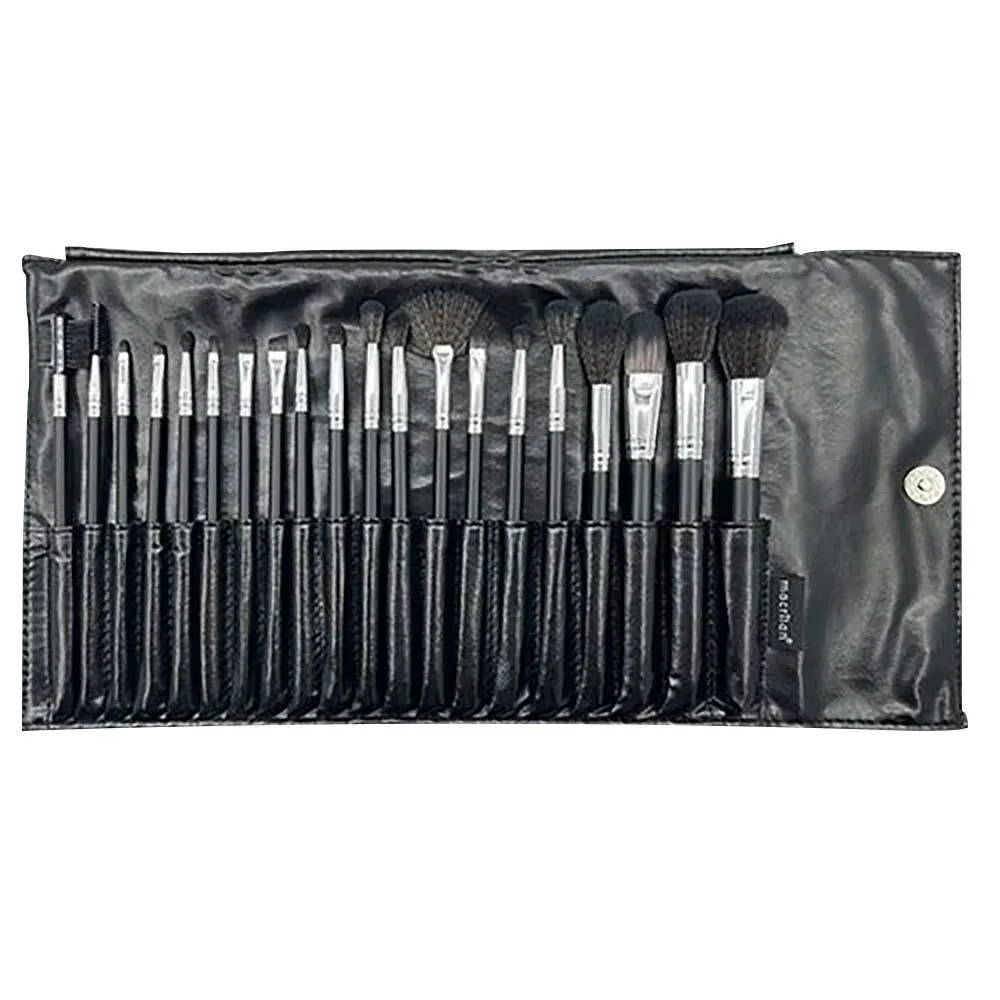 Contém 20 pincéis para maquiagem e uma bolsa necessaire.