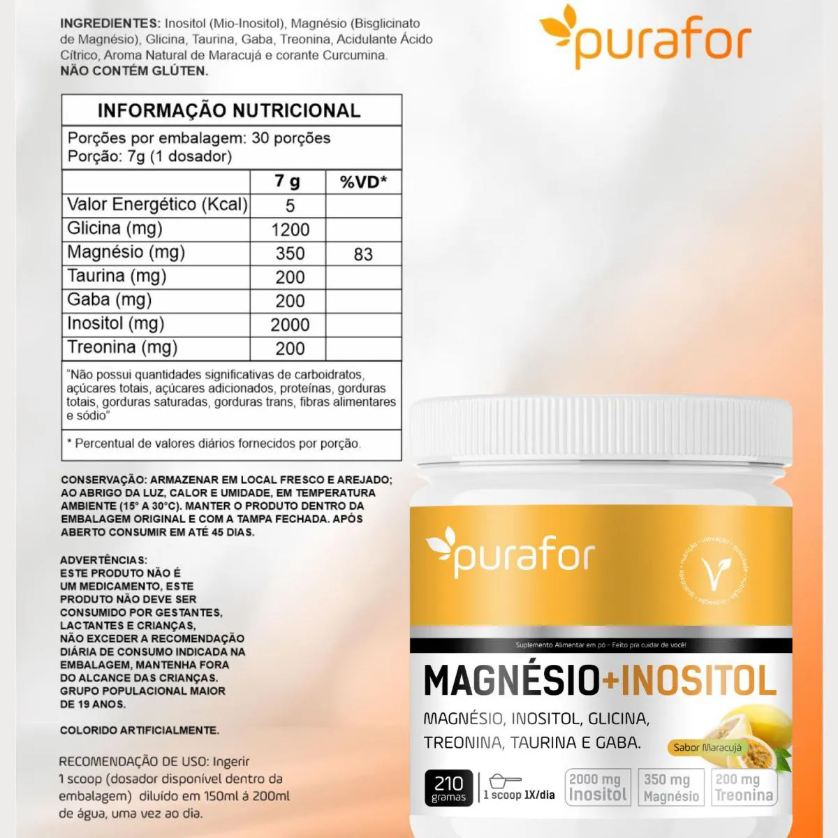 Magnésio com Inositol, Glicina, Taurina, Treonina e Gaba – 210G Purafor