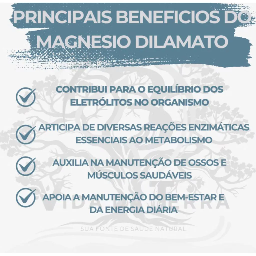 O QUE É MAGNÉSIO DIMALATO? O magnésio é um mineral encontrado em diversos alimentos como sementes, amendoim, aveia, banana ou leite, essencial para várias funções importantes no corpo. COMO TOMAR? O suplemento em cápsulas deve ser ingerido com bastante água, seguindo a recomendação de 1 a 2 cápsulas ao dia. *Este produto não é um medicamento e não tem como objetivo tratar ou curar doenças.