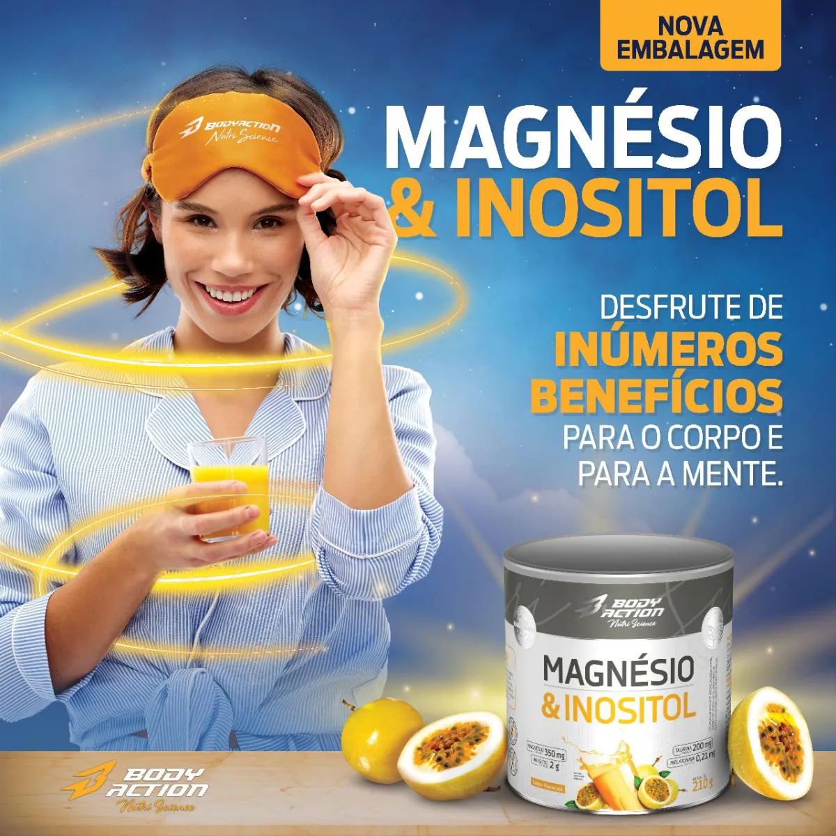 Magnésio e Inositol com Melatonina 210G Bodyaction