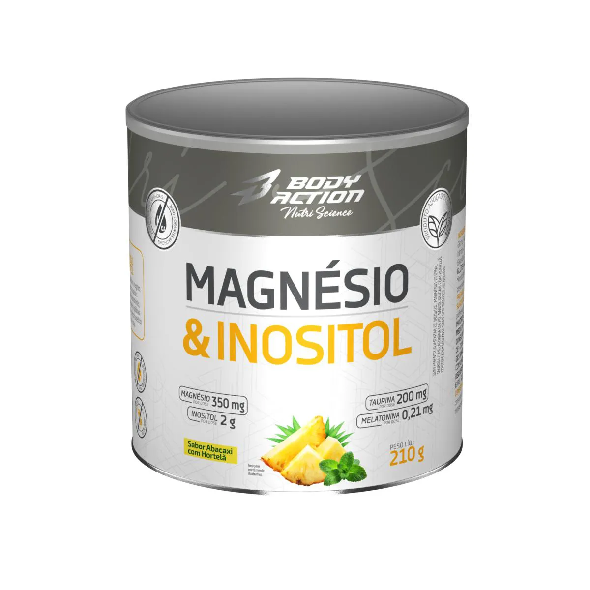 Magnésio e Inositol Taurina Melatonina 210g Bodyaction Sabor Abacaxi C/ Hortela