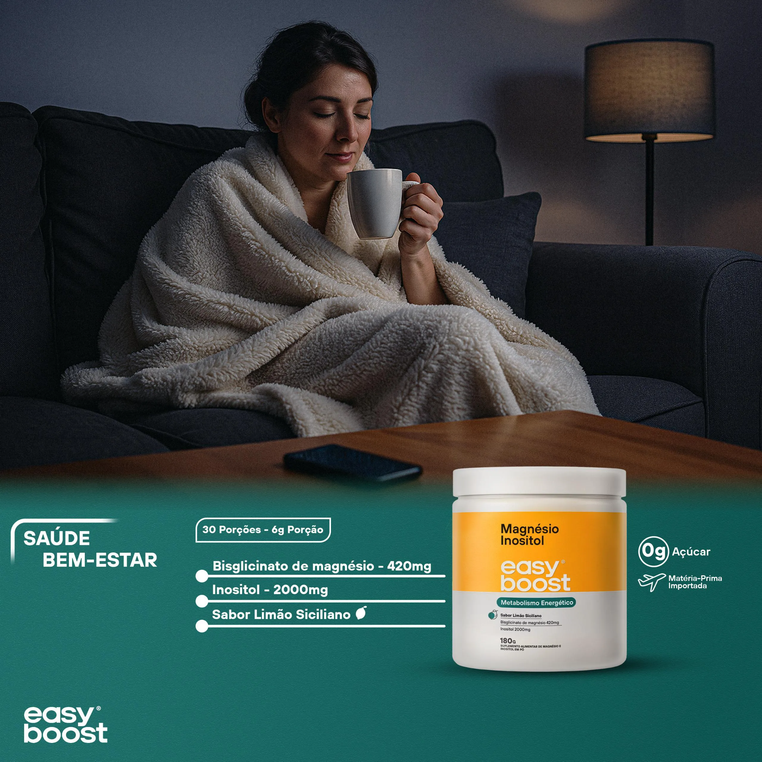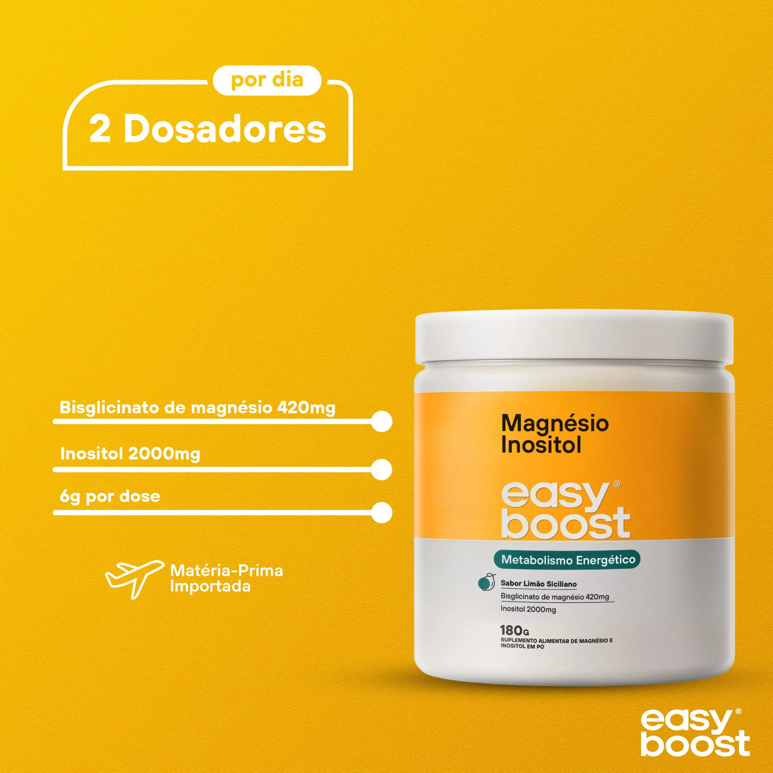 Magnésio Inositol Easy Boost Quelato 360g Kit 2x